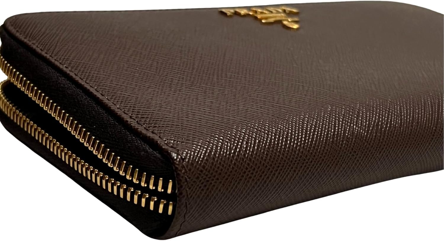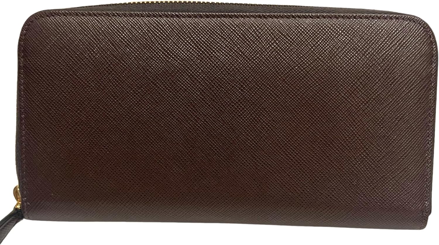 Prada Bruciato Brown Saffiano Leather Zip Around Continental Wallet