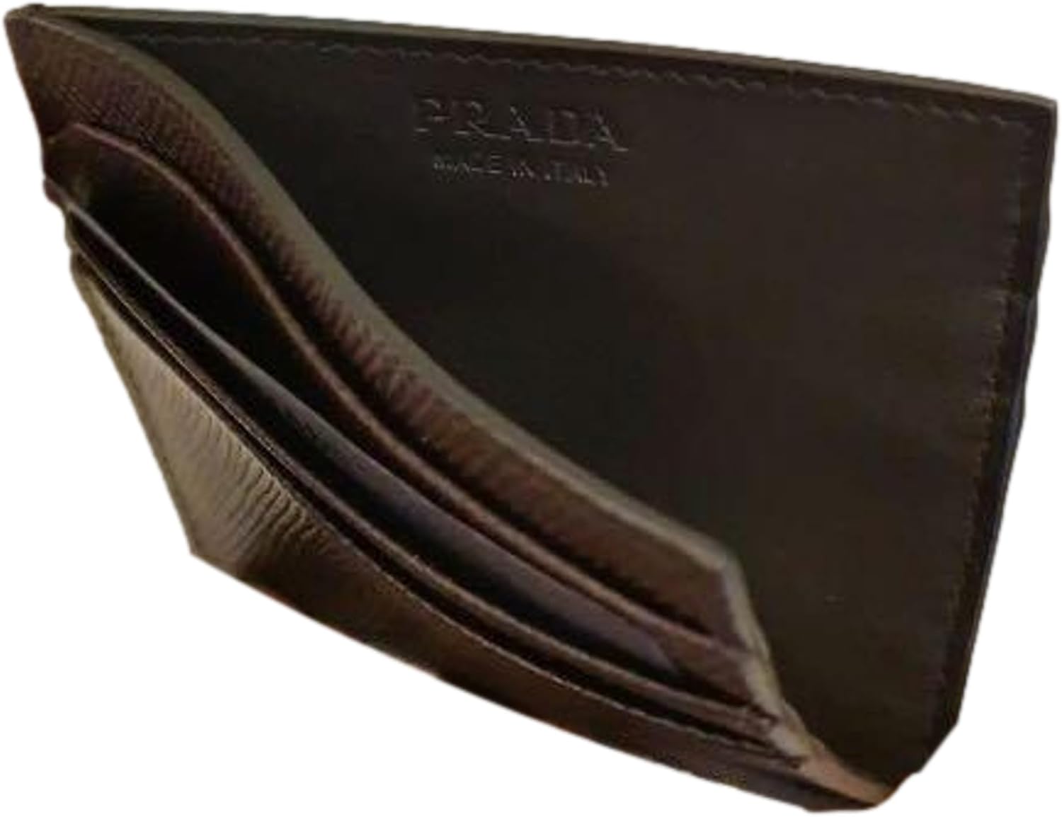 About this itemnThis stylish Prada card holder is the perfect addition to your everyday essentials. The iconic Prada logo is featured prominently on the front in silver metal. Beautiful rich brown color. With six slots for cards as well as one down the middle, there is plenty of storage for all of your needs. Its small size makes this leather card holder perfect to place in your pocket or bag. Made in Italy.nMiddle Slot Available – 6 Credit Card Slots – 1 interior Card SlotnModel 2MC223 – Dimensions: 4