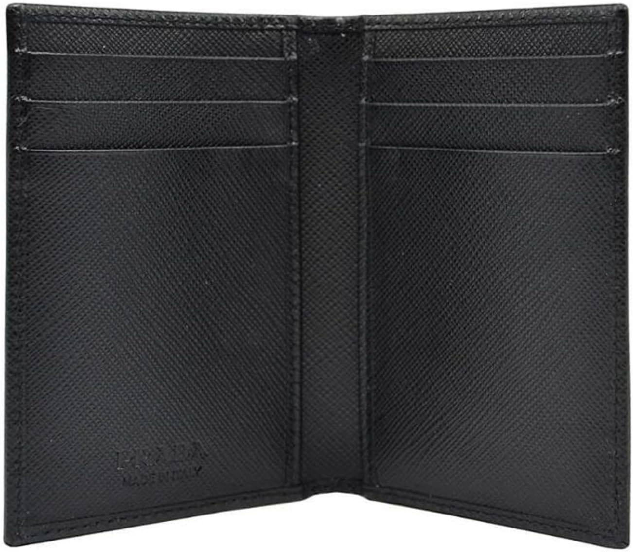 About this itemnPrada unisex saffiano bifold vertical card holder, with its six credit cards slots and two bill slots, inModel: 2MC101 Black Saffiano leathernSix credit card slots Two Bill compartmentsnMeasurements: 2.75 x 0.25 x 4.25