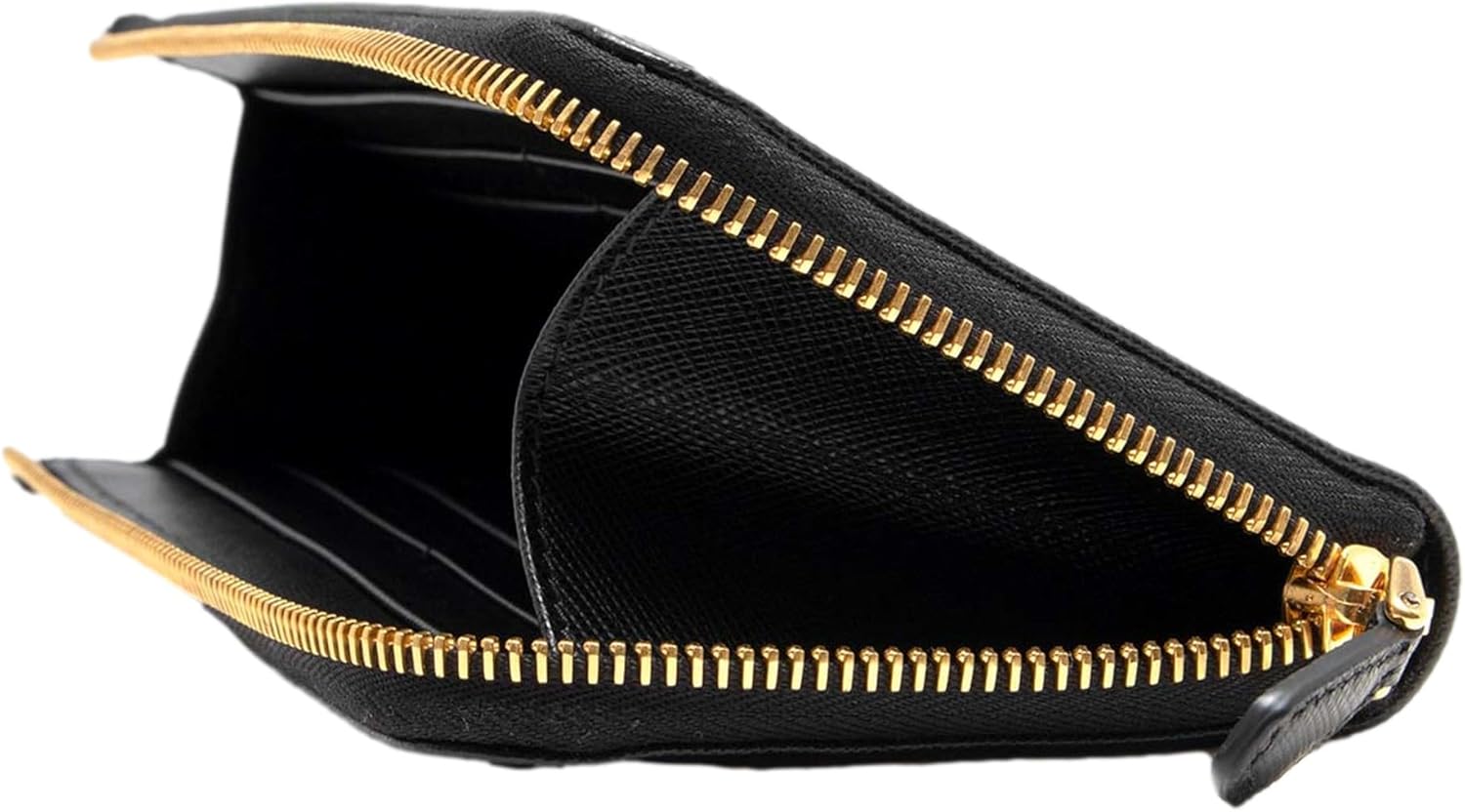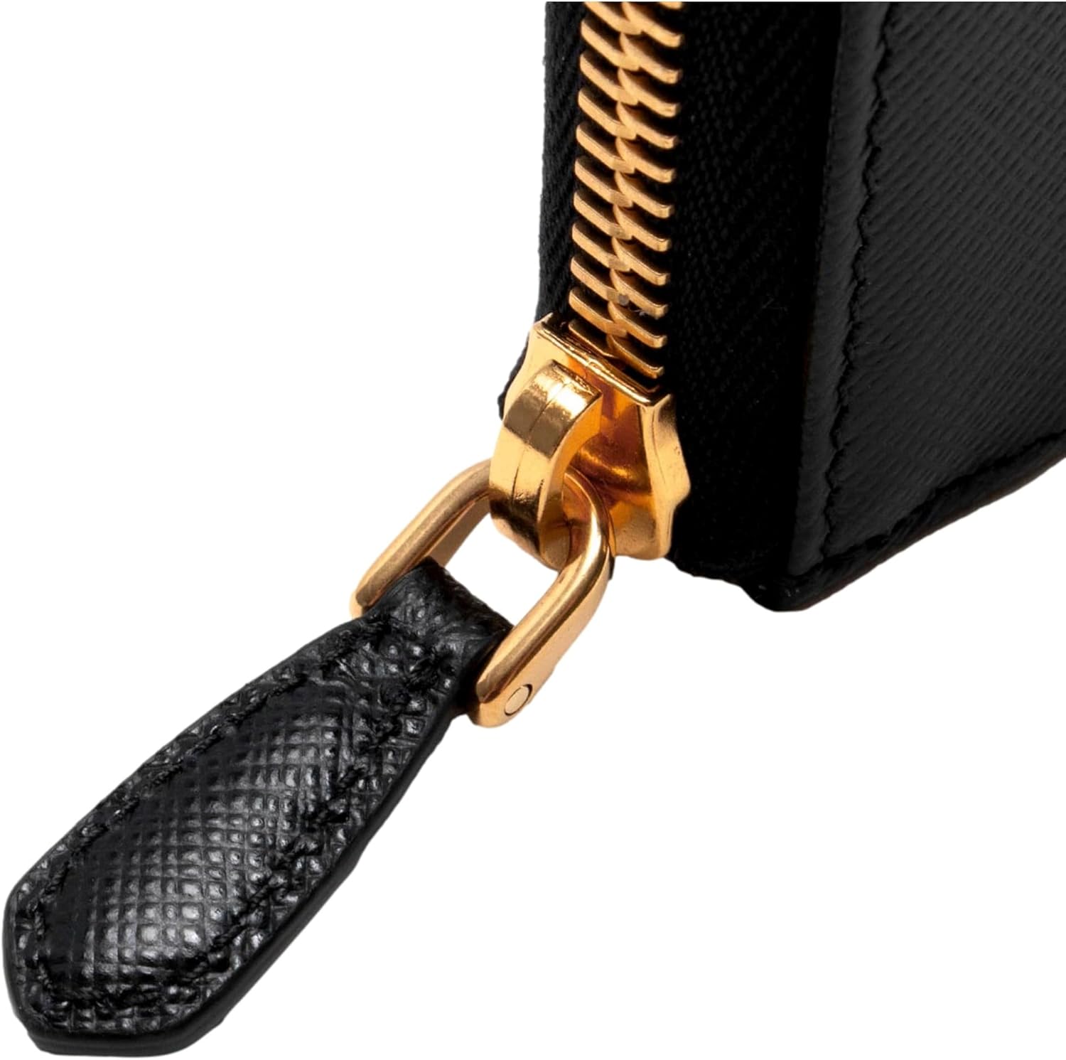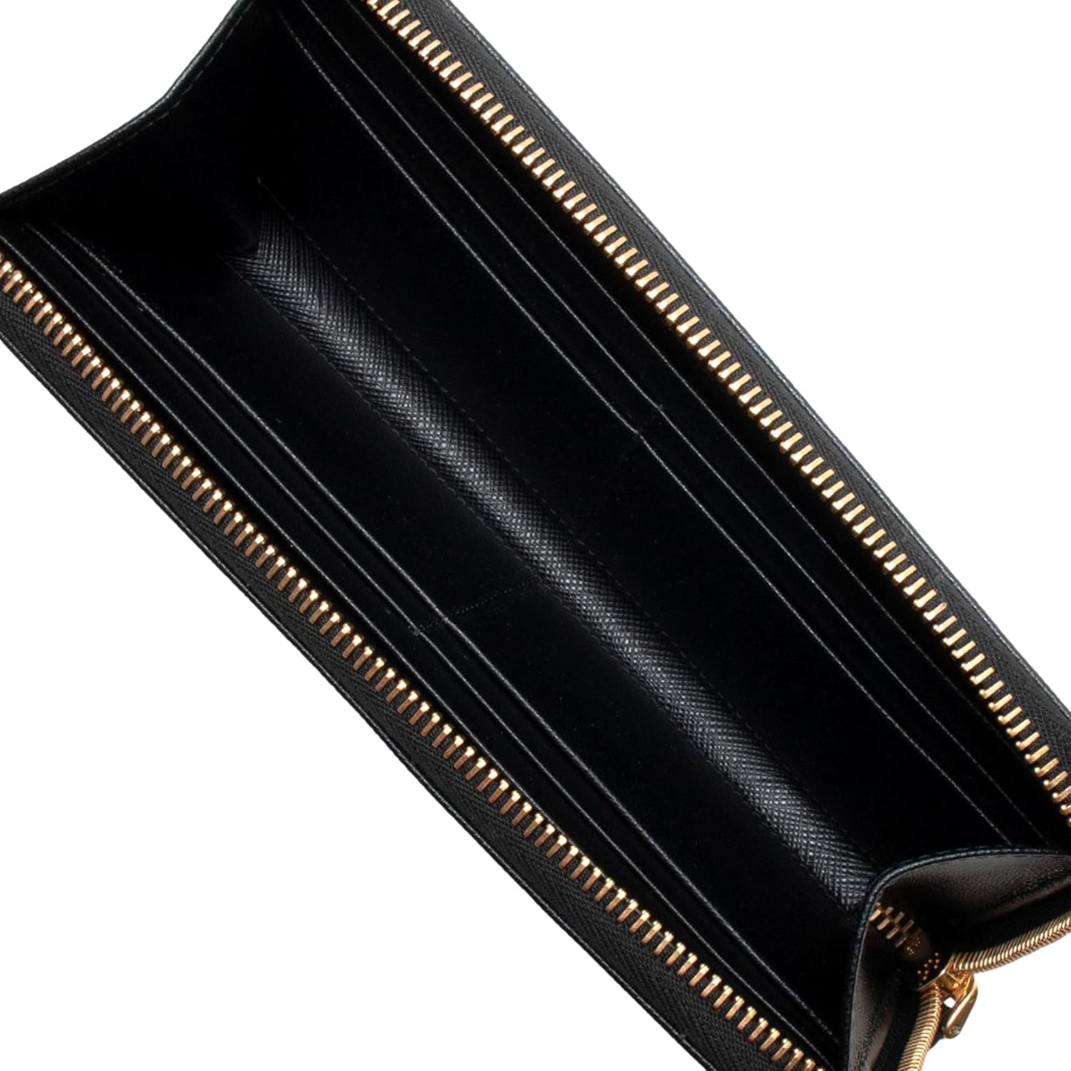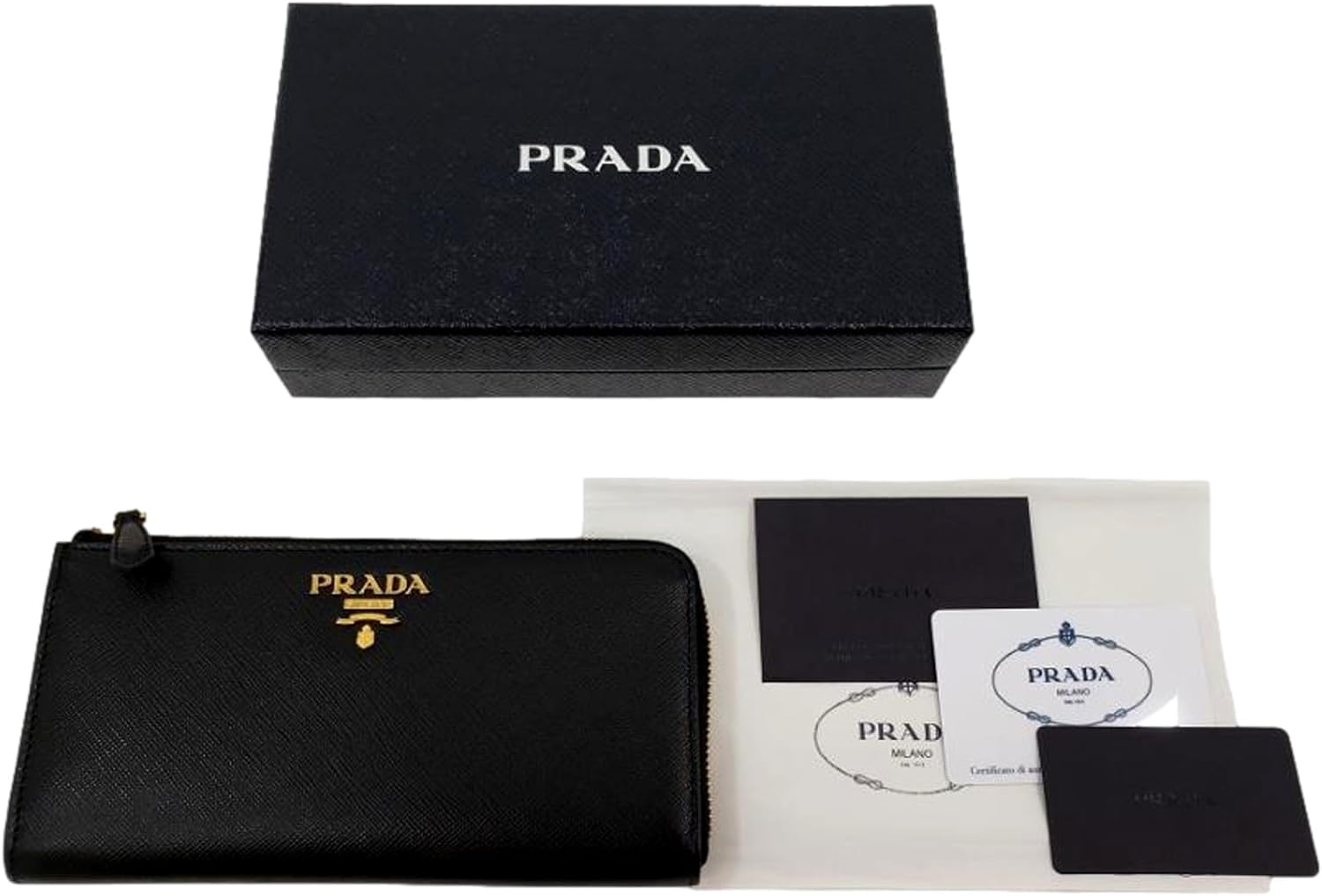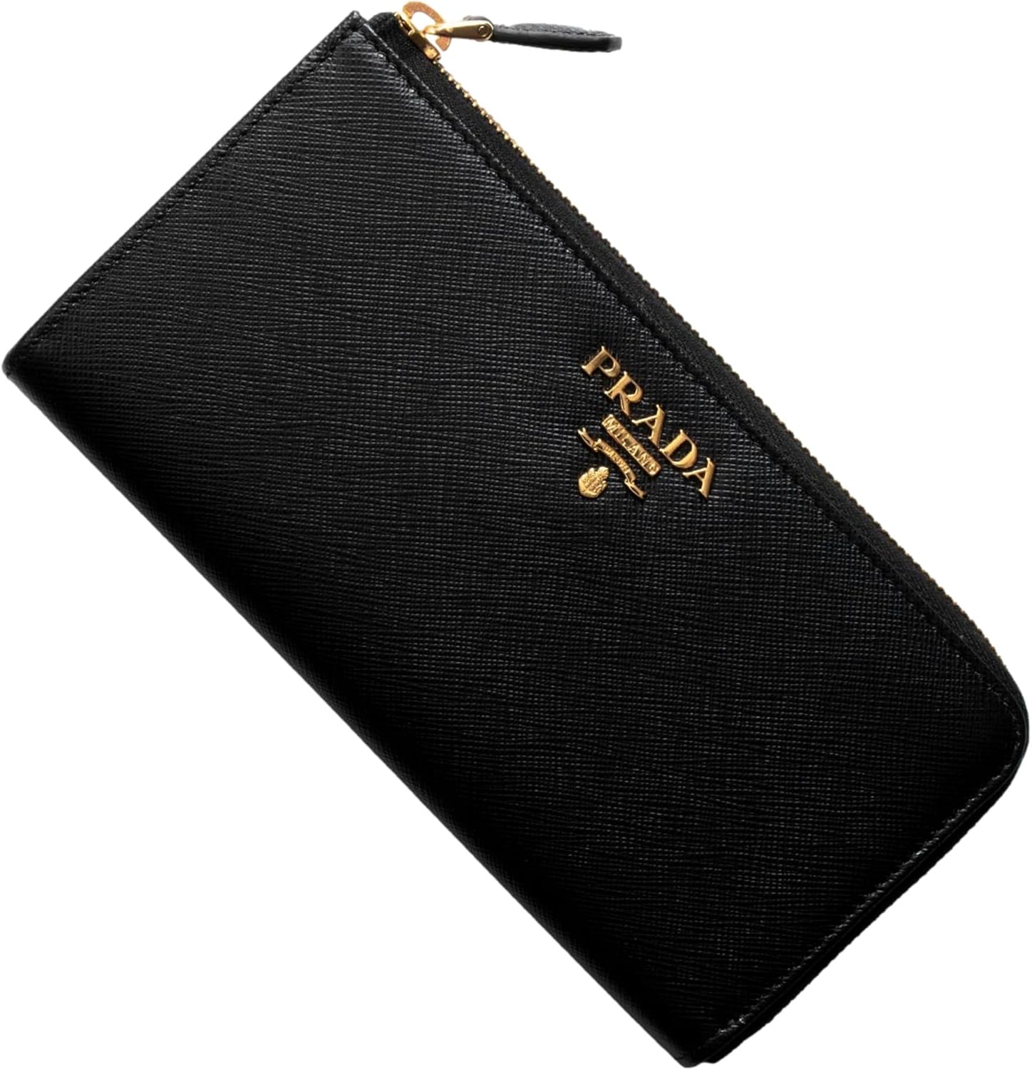 Prada Saffiano Long Continental Zip Wallet Black Leather Gold Logo
