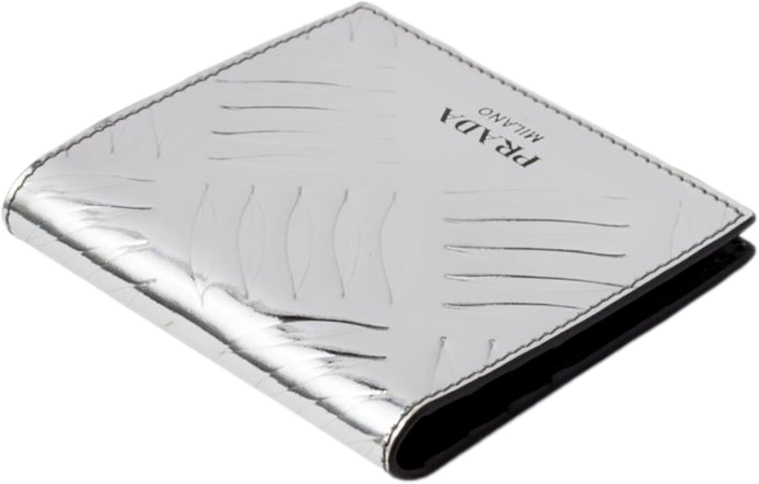 About this itemnPremium Leather: Crafted from Prada’s signature Spazzolato embossed metallic silver leather, this bifold wallet exudes luxury and sophistication.nCompact Design: Slim and compact, it fits neatly into pockets or bags for effortless carrying.nMultiple Compartments: Features several card slots, a billfold compartment, and additional pockets for organization.nIconic Branding: Embellished with Prada’s iconic logo, showcasing the brand’s heritage and craftsmanship.nVersatile Accessory: Suitable for both formal and casual occasions, complementing any ensemble with its timeless style.