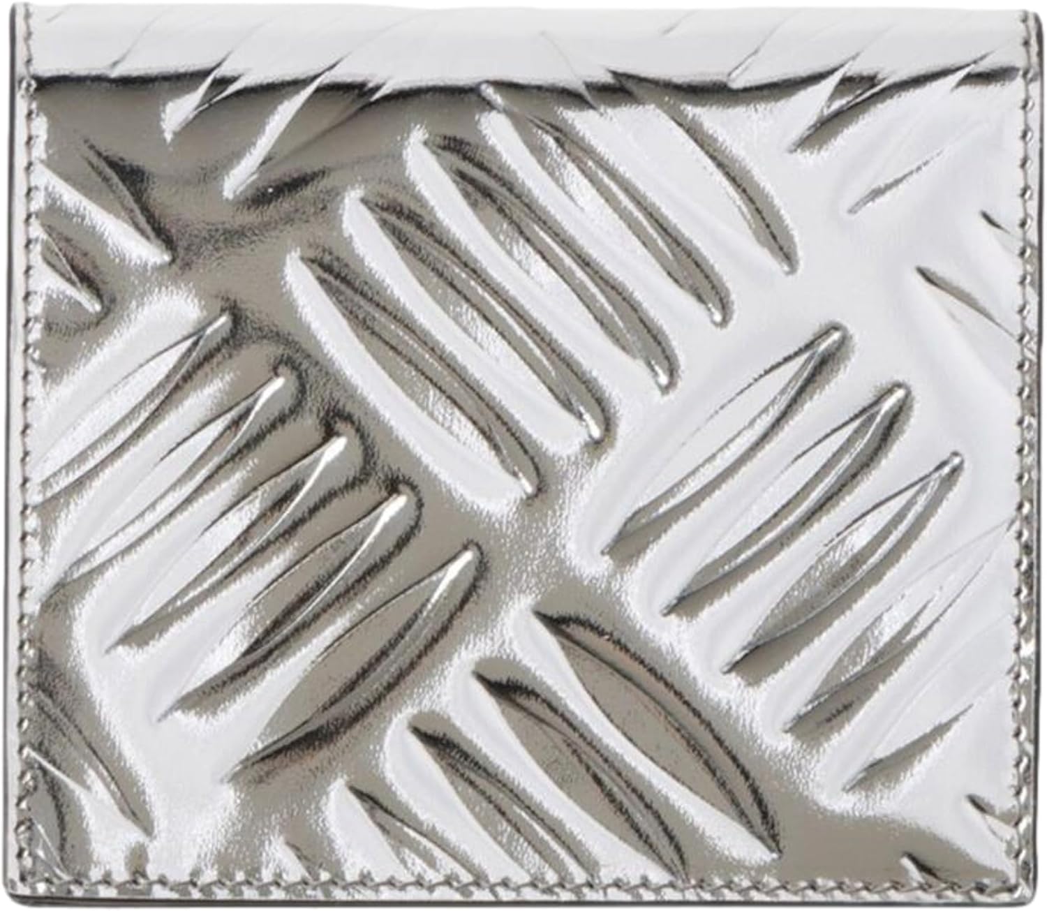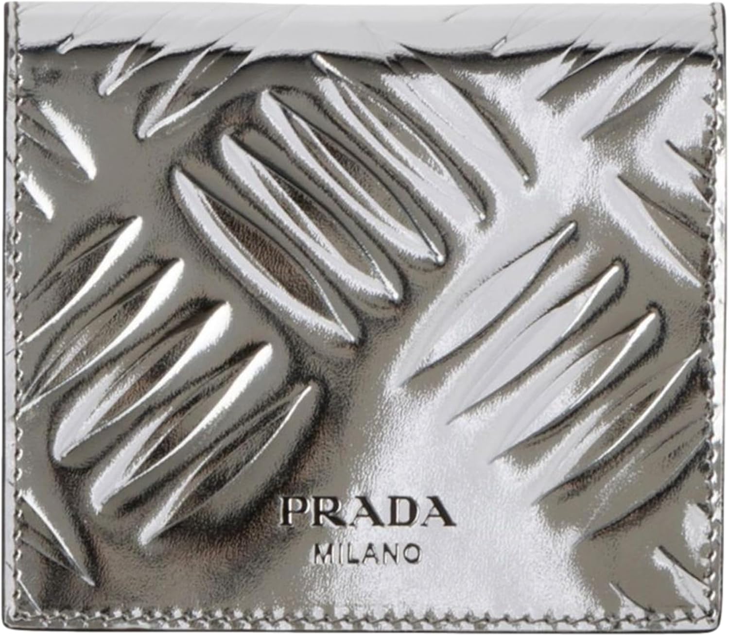 Prada Spazzolato Bifold Card Wallet, Metallic Silver Embossed Leather
