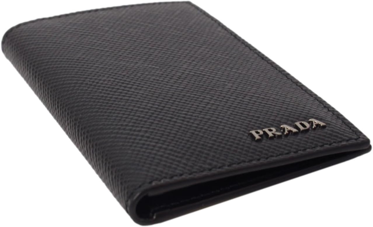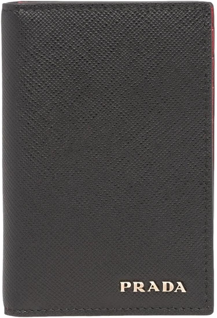 Prada Unisex Black Saffiano Leather Vertical Logo Card Holder, Small, Nero, 2MC101