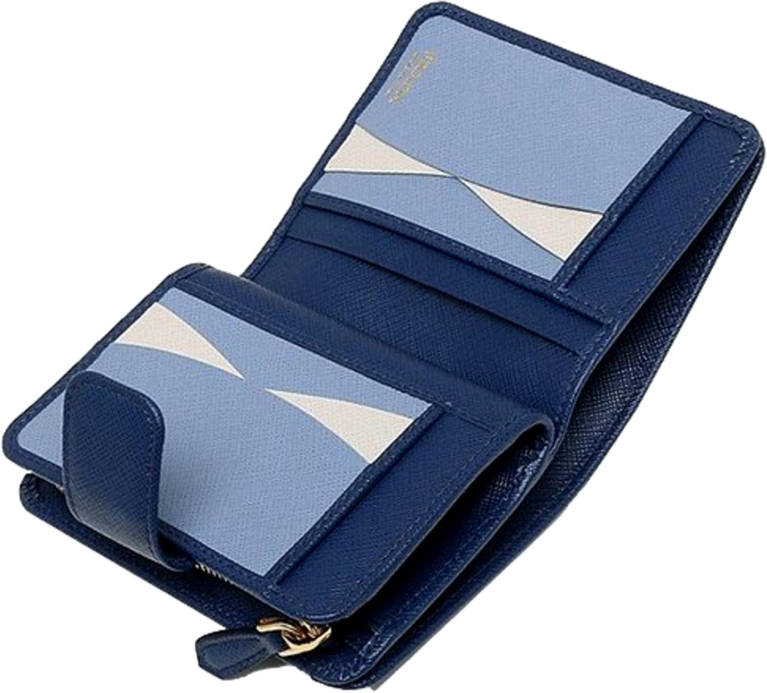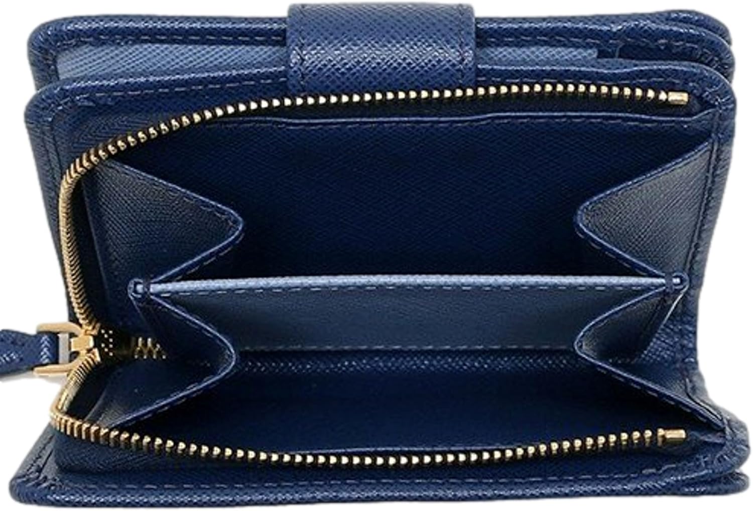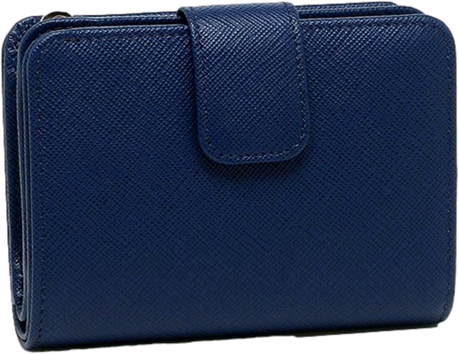 Prada Wallets Womens Saffiano Leather Astrale Blue Snap Trifold Wallet Leather Wallet For Women