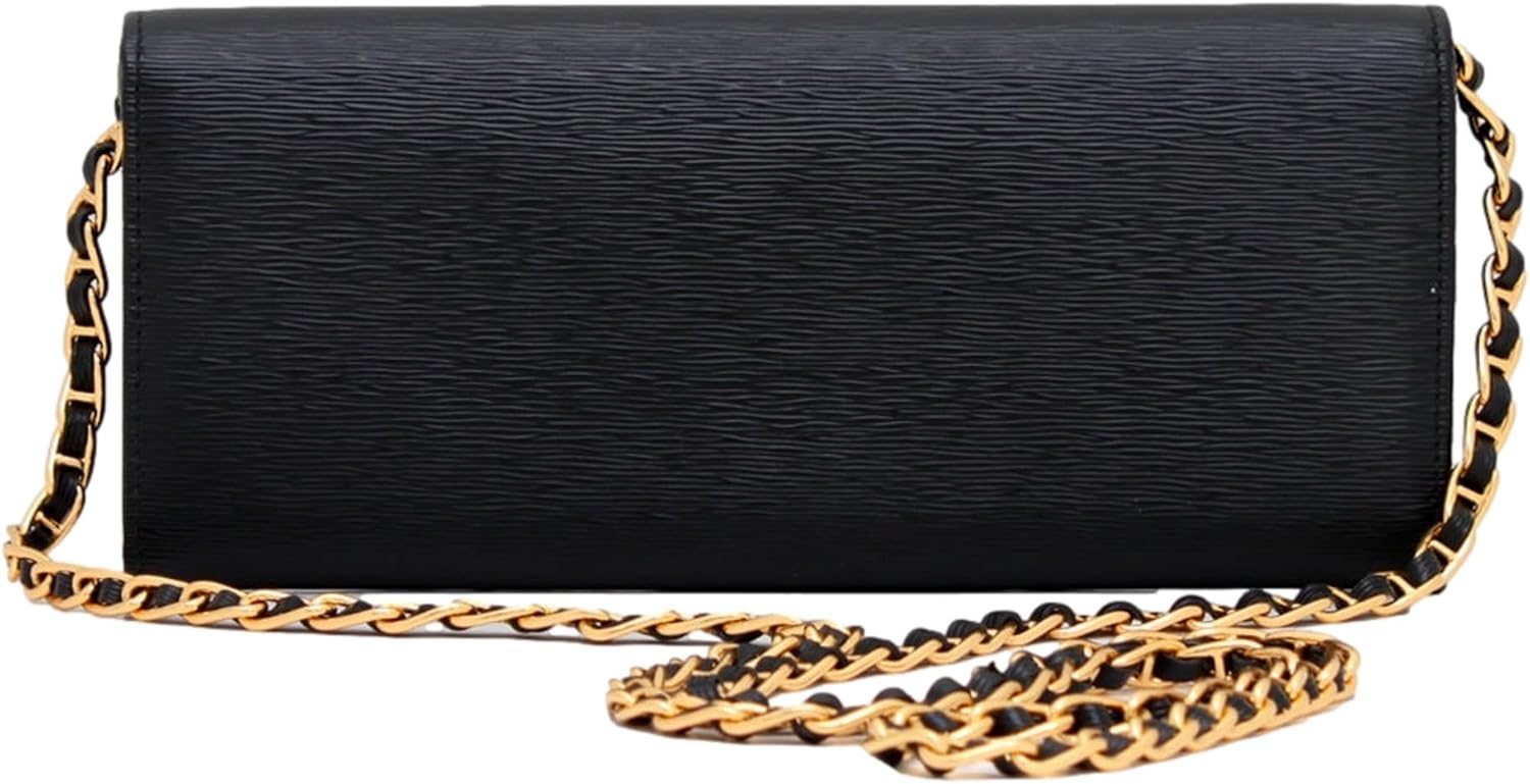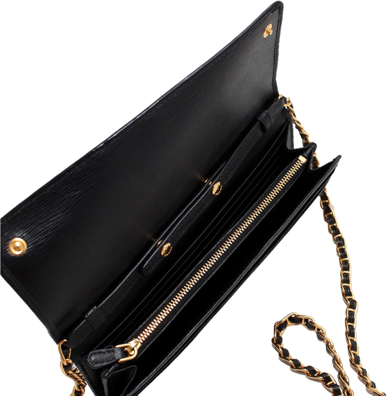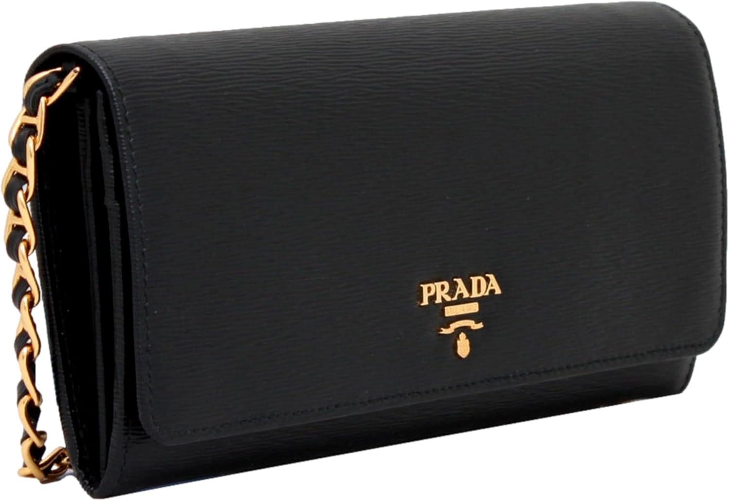 Prada Womens Black Vitello Move Leather Chain Wallet Crossbody 1MT290