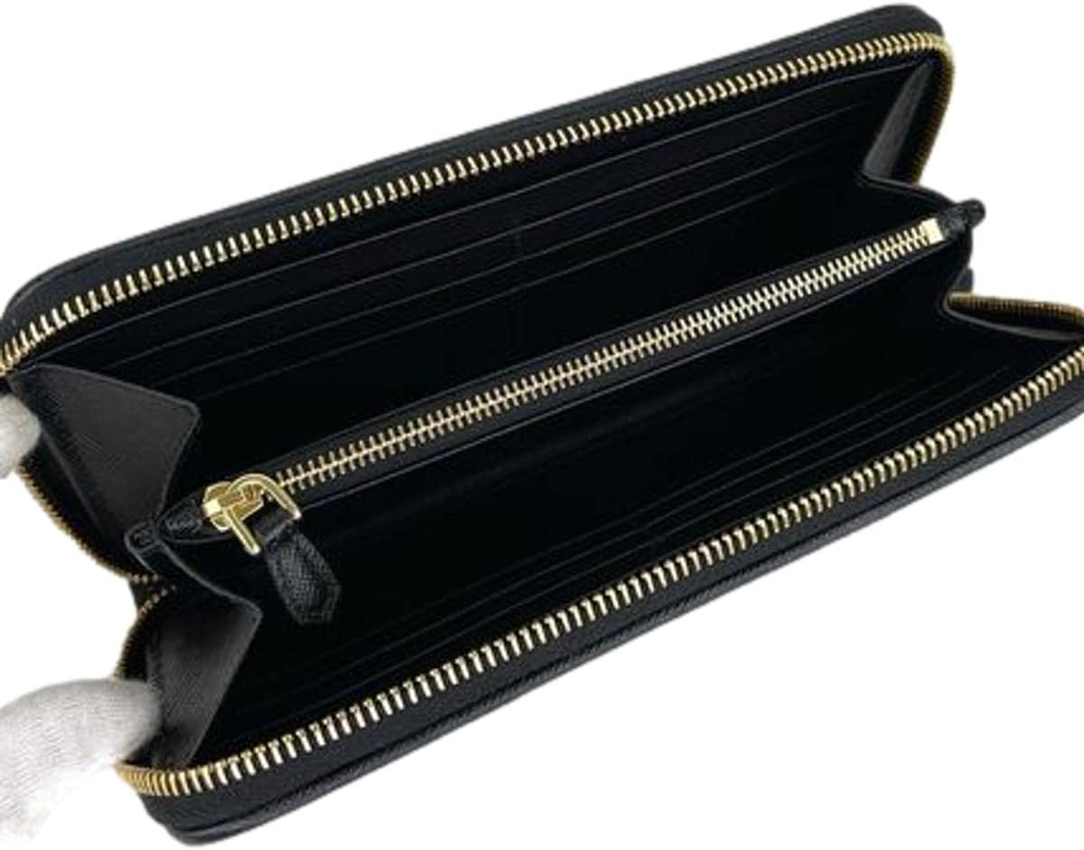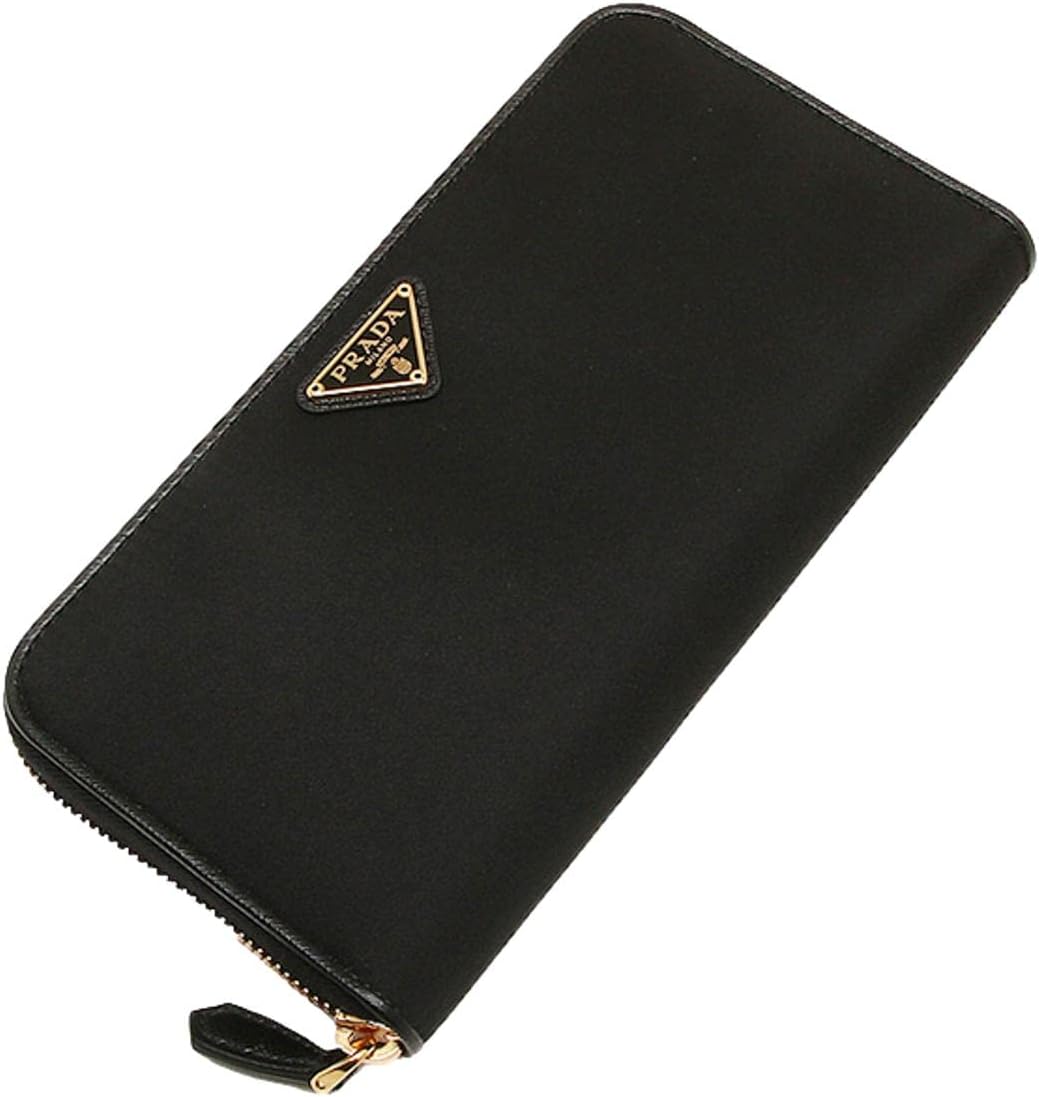 Prada Women’s Large Black Tessuto Nylon and Leather Zip Around Wallet 1ML506