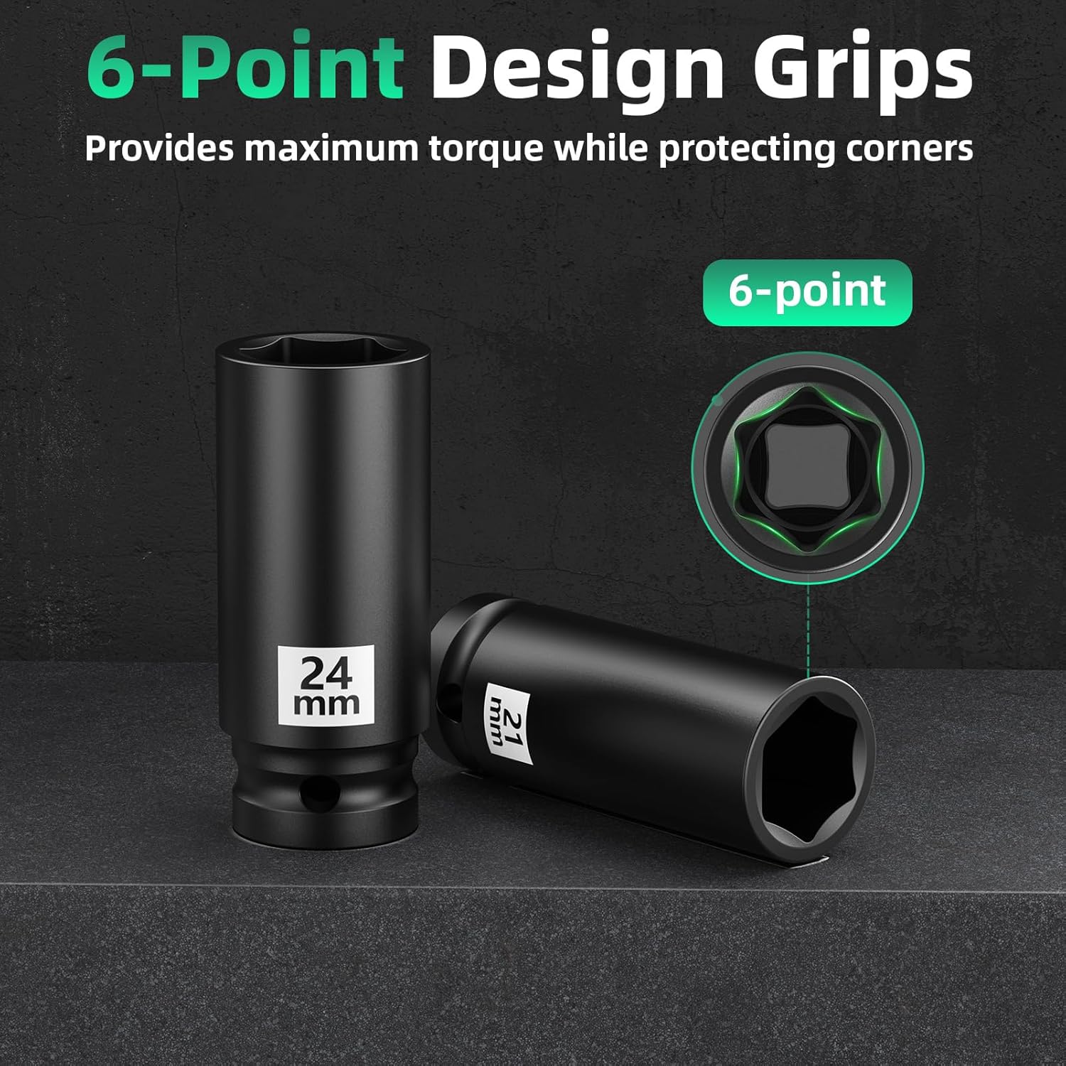 Professional Socket Set Wrench Kit, 10-Piece Metric 10-12-13-14-16-17-19-21-22-24mm, High-Torque C-V Steel Sockets for Automotive, Home Repair & DIY Projects
