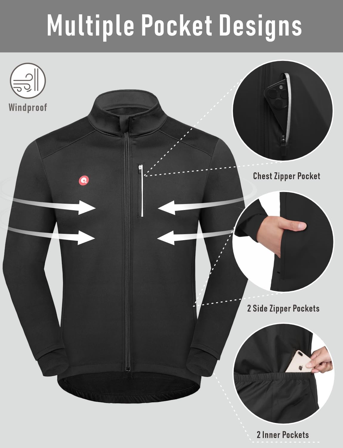 Przewalski Cycling Bike Jackets for Men Winter Thermal Running Jacket Windproof Breathable Reflective Softshell Windbreaker