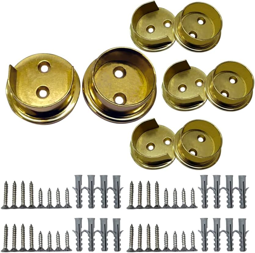 QCAA Premium Solid Brass Closet Pole Socket Set, Heavy Duty, 1-1/2 inch, with Stainless Screws, Polish Brass Lacquered, 4 Pairs, Made in Taiwan