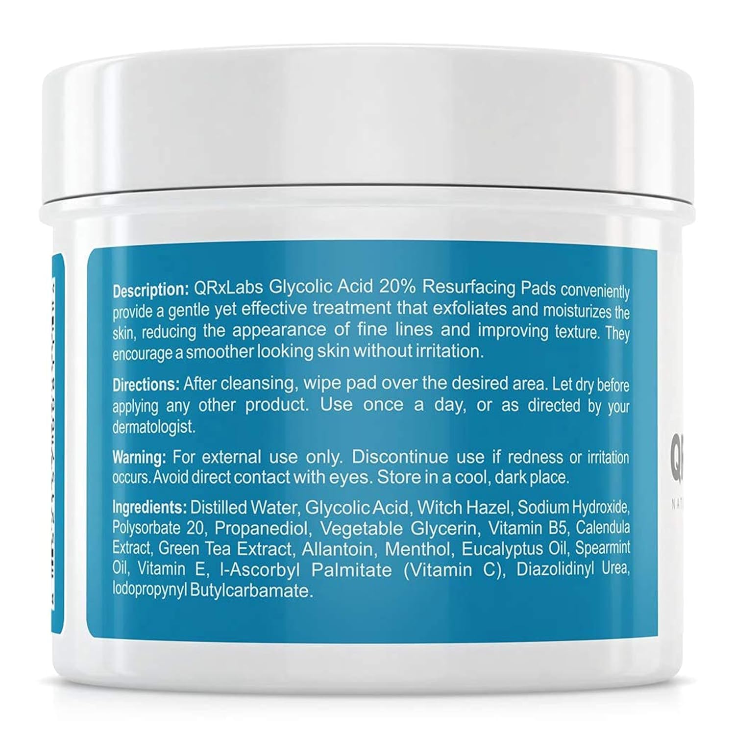 QRxLabs Glycolic Acid 20% Resurfacing Pads for Face & Body with Vitamins B5, C & E, Green Tea, Calendula, Allantoin – Exfoliates Surface Skin and Reduces Fine Lines and Wrinkles – Peel Pads