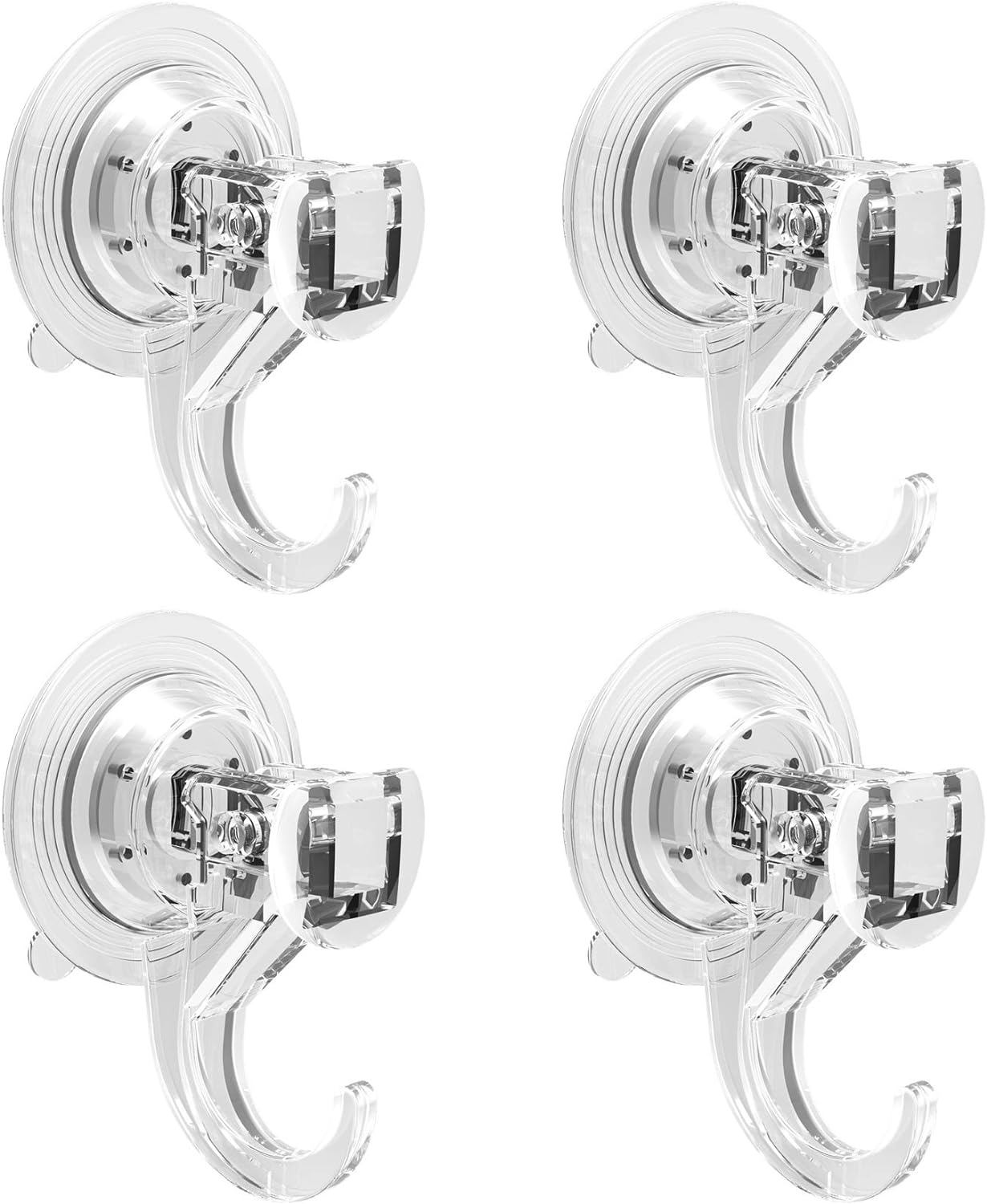 Quntis Suction Hooks 4 Packs, Powerful Push and Lock Vacuum Multi-Purpose Suction Shower Hooks Wreath Hanger Strong Absorption Suction Cup Holds Up to 3kg Transparent for Kitchen Bathroom Door Window