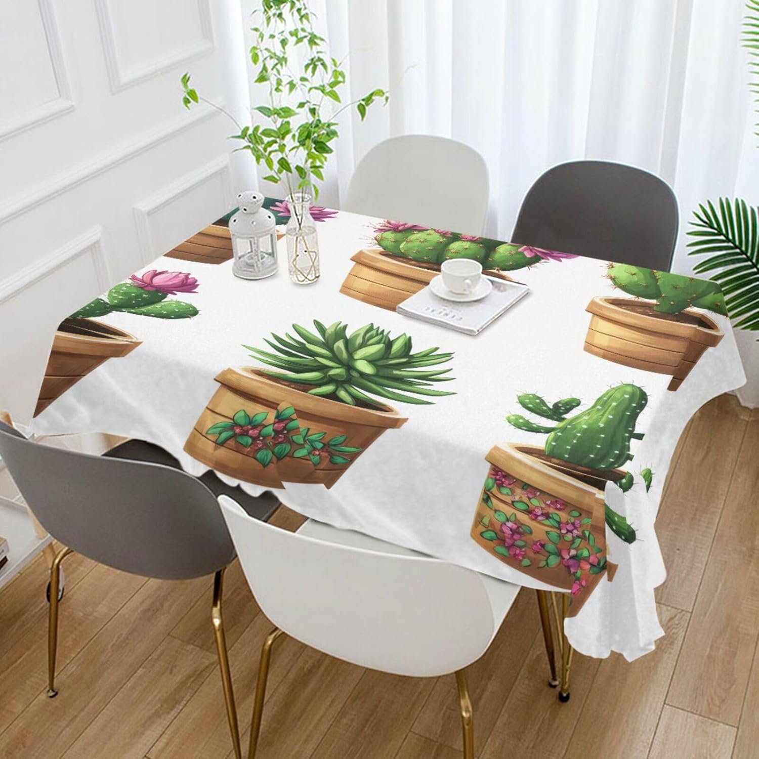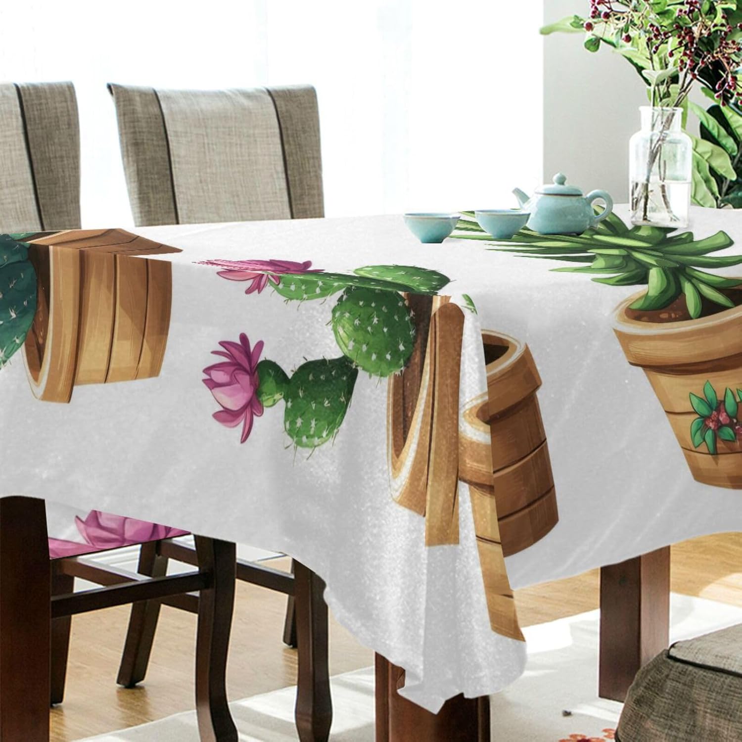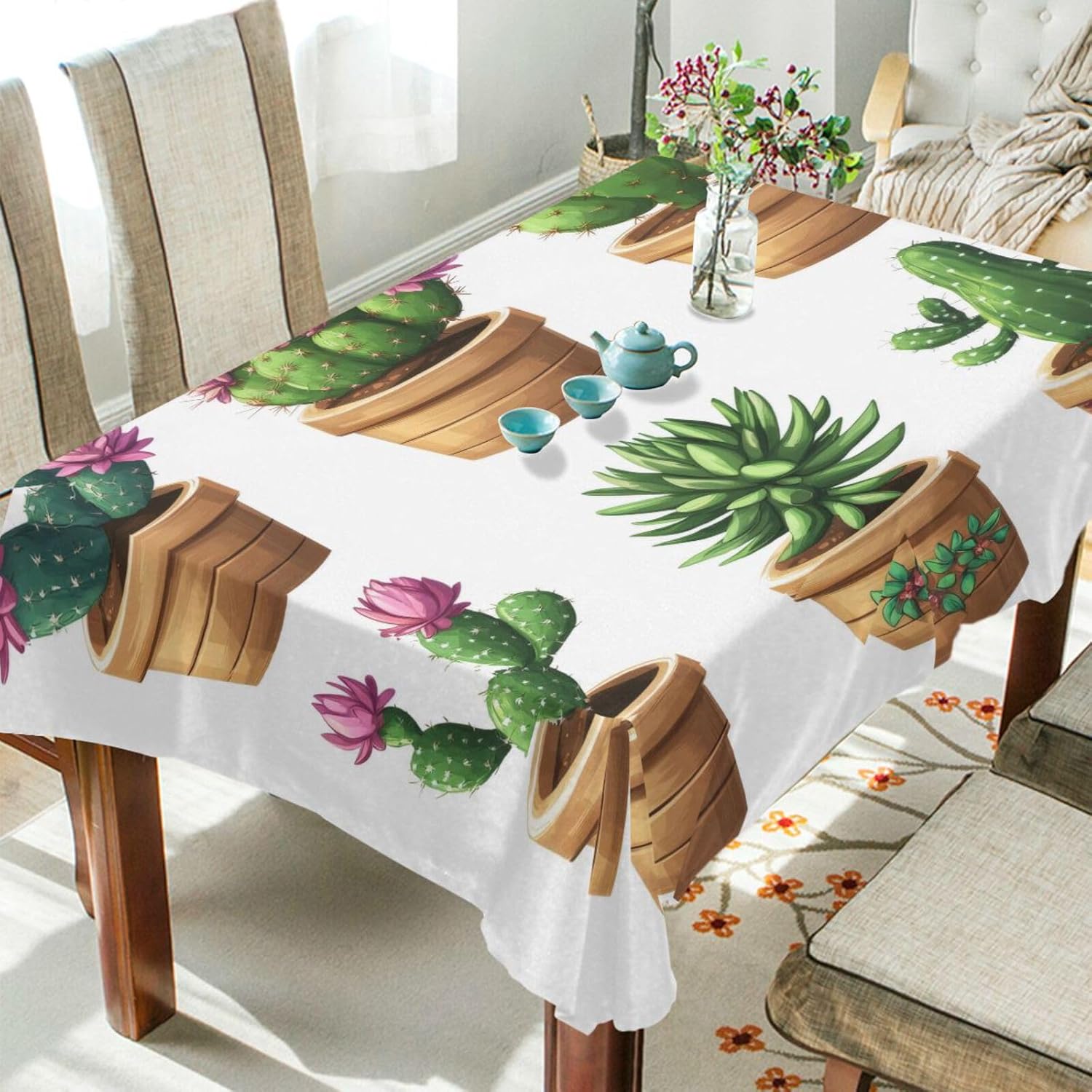 Rectangle Tablecloth, Cactus Table Cloth Wrinkle Free Fabric Table Cover for Kitchen Dining Table Decoration, 54×72 in