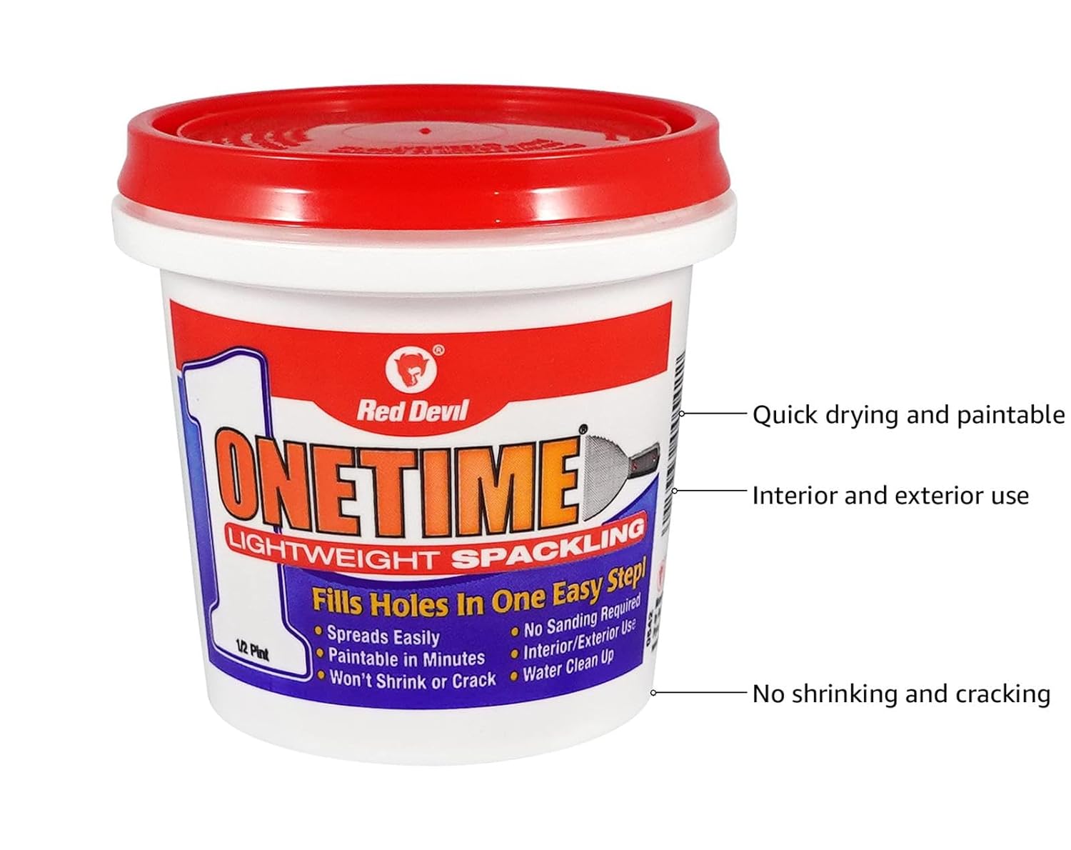 Red Devil 0542 ONETIME Lightweight Spackling, 1/2 Pint, White, 8 Ounce