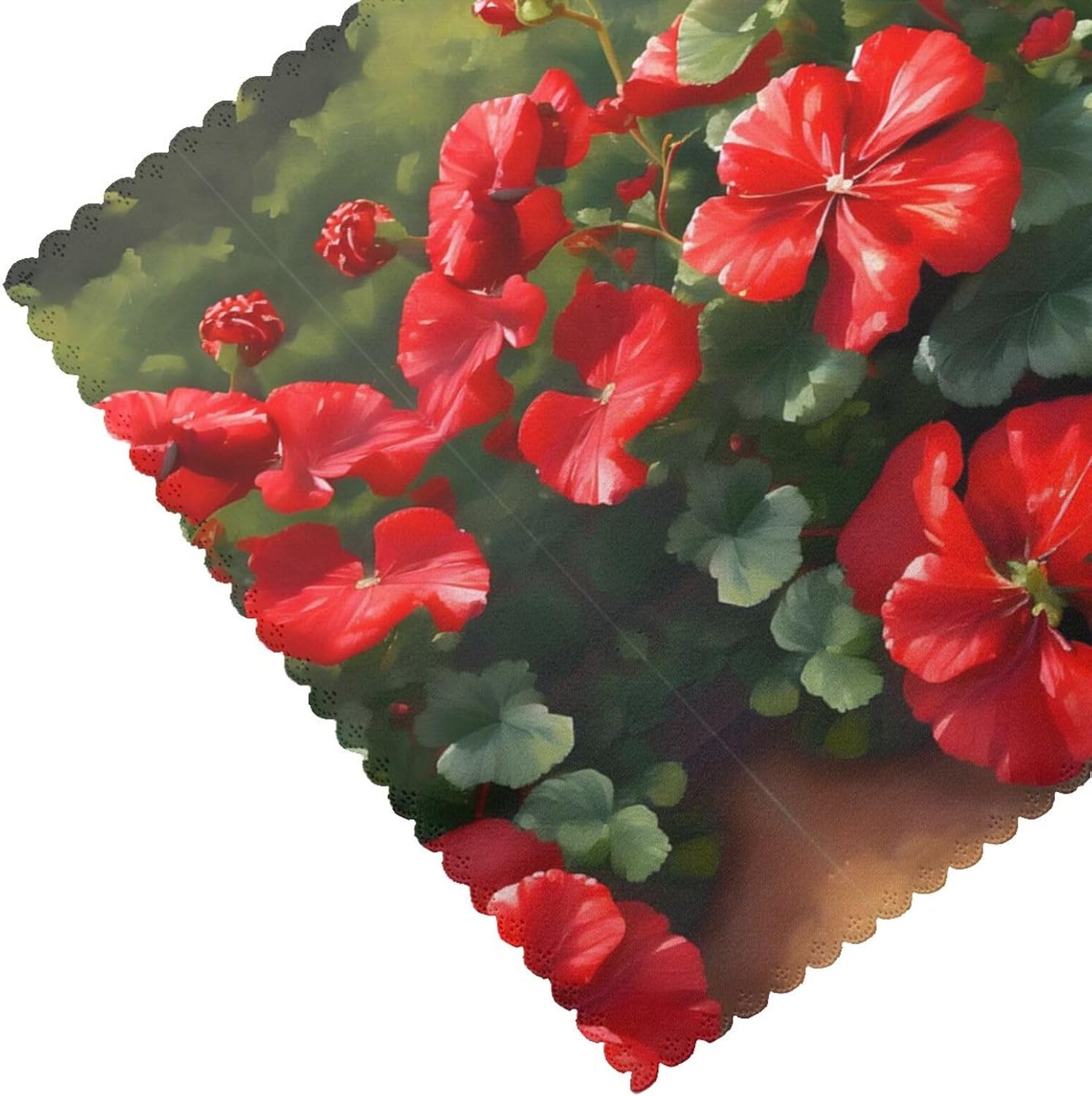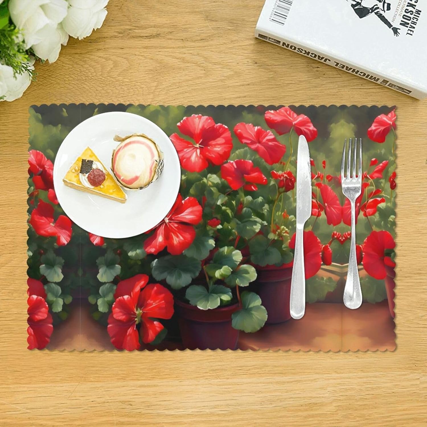Red Geraniums Placemats Set of 4, (12 * 18 inches), Easy to Clean Insulated Placemats for Dining Room, Patio Table, Kitchen