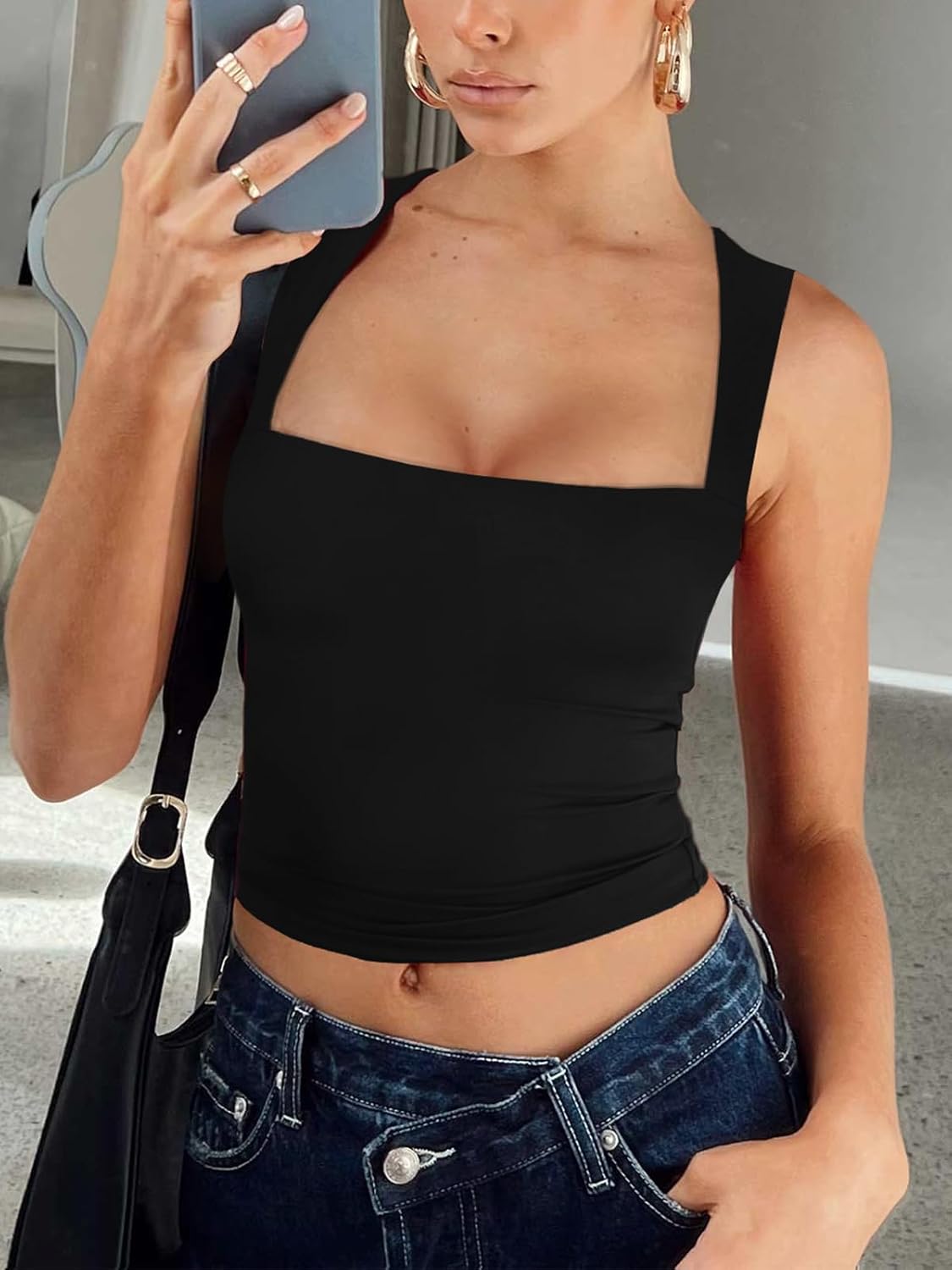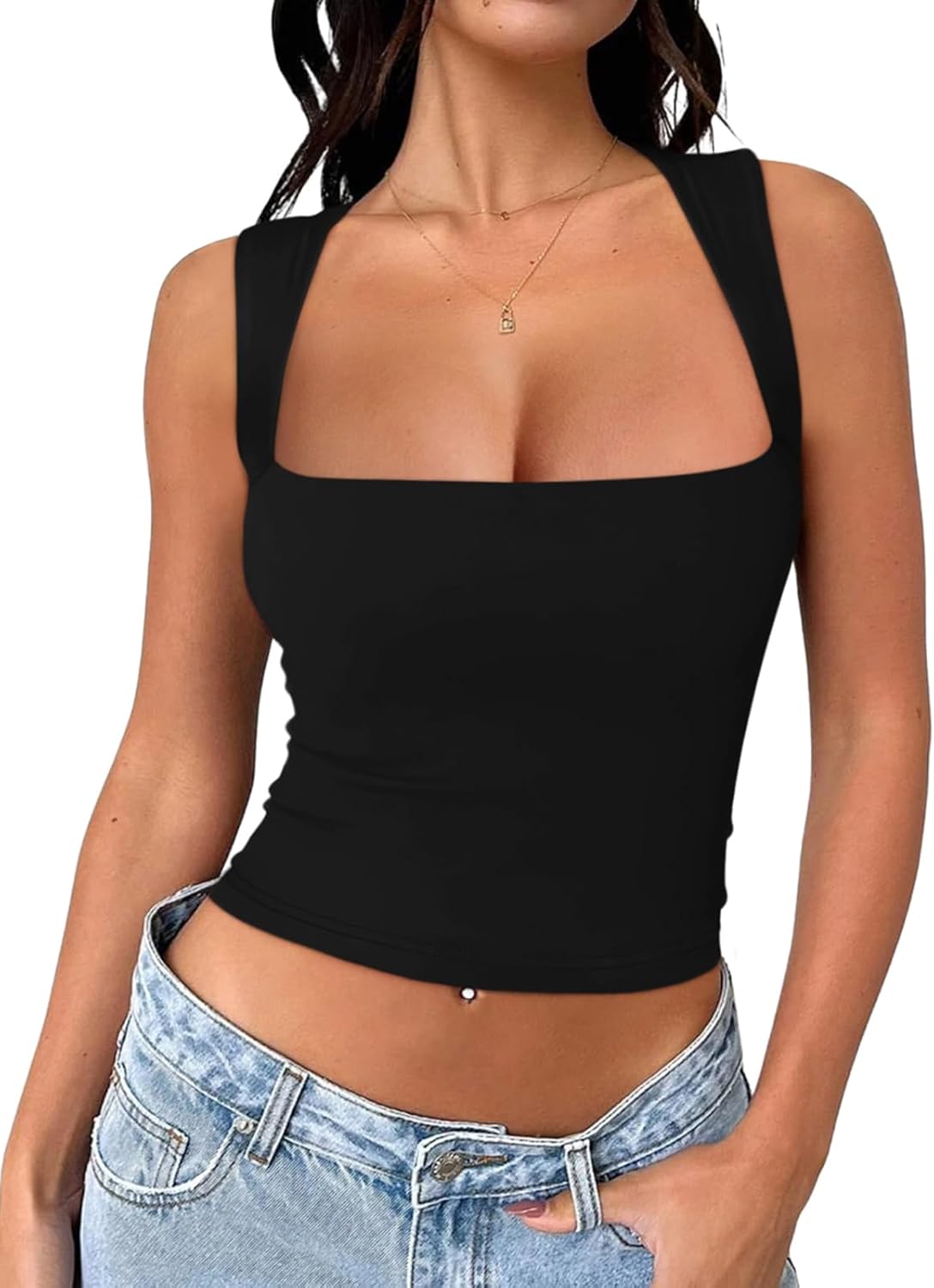 REORIA Butsmooth® Women’s Square Neck Going Out Crop Tops Double Lined Cute Basic Tank Tops 2024 Clothes