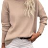 Zeagoo Women's Turtleneck Sweater 2024 Fall Winter Chunky Knitted Pullover High Low Hem Trendy Basic Jumper Top