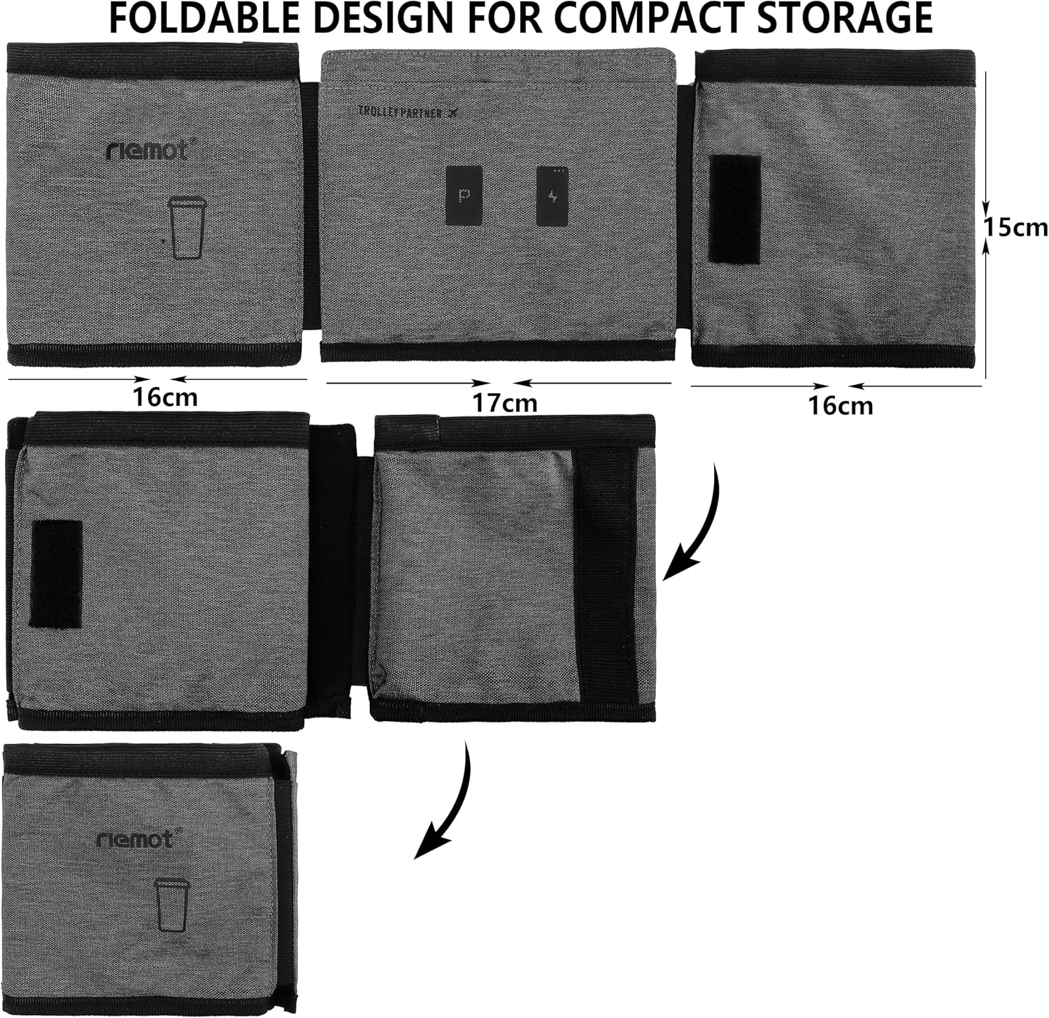 About this itemnriemot Luggage Cup Holder for Suitcase: Free Your Hands, Go Travel! Traveling can be a drag, and you don’t usually have a free hand to hold a drink especially with kids. But with this suitcase cup holder, you can hold two drinks now.nInstant Convenience: 3 pockets available. Instantly be able to place your phones, passports or small items in one back pocket, and put two drinks in front two pockets.nFits Most Luggage Handles: Our cup holder is designed to fit most roll-on suitcase handles, making it easy to use and convenient for any traveler. You can adjust the magic tape to fit your luggage handles.nDurable and Machine Washable: Made of premium oxford cloth, our luggage drink holder is wear-resistant and can be easily cleaned in the washing machine.nPerfect Gift for Travelers: Whether you’re a flight attendant, business traveler, or parent with kids, riemot’s cup holder makes a great gift for anyone who loves to travel. Travel must haves for airport or airplane.