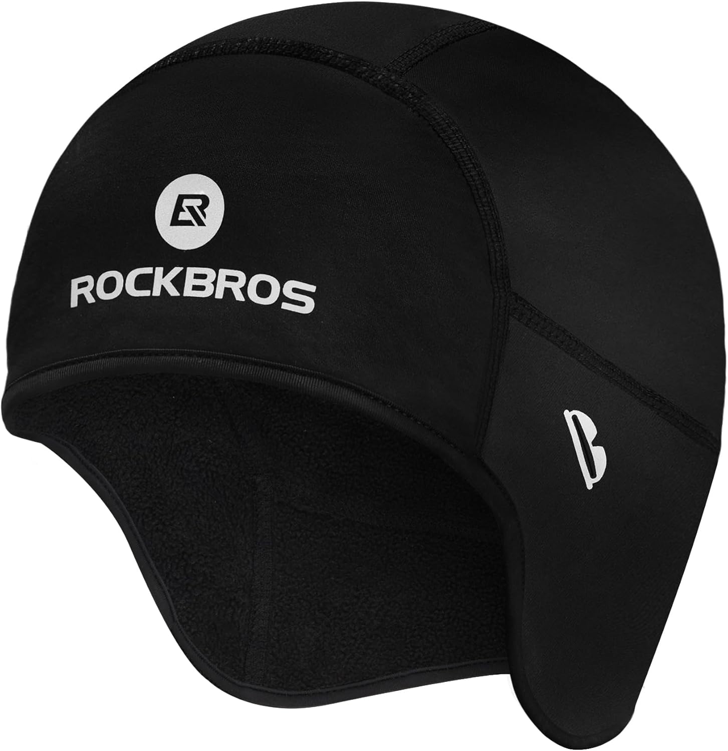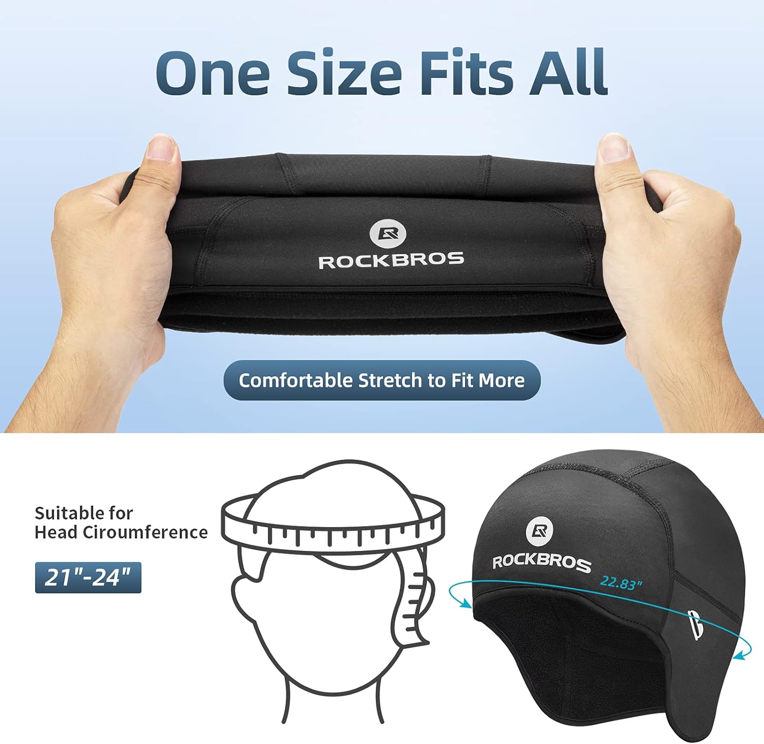 ROCKBROS Skull Cap Helmet Liner Winter Thermal Cycling Caps for Men Women Running Beanies Hat with Glasses Holes