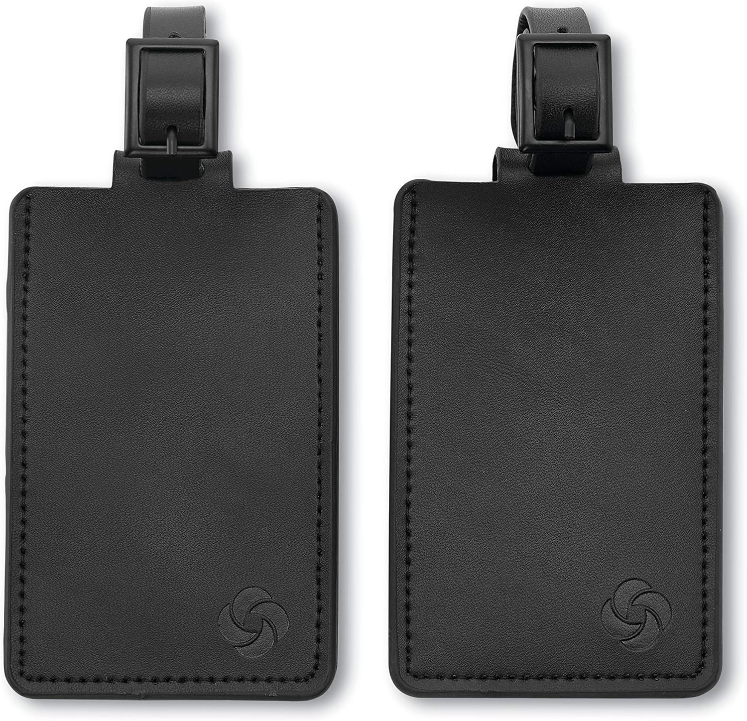 Samsonite 2-Pack Leather Luggage ID Tag, Black Logo, One Size