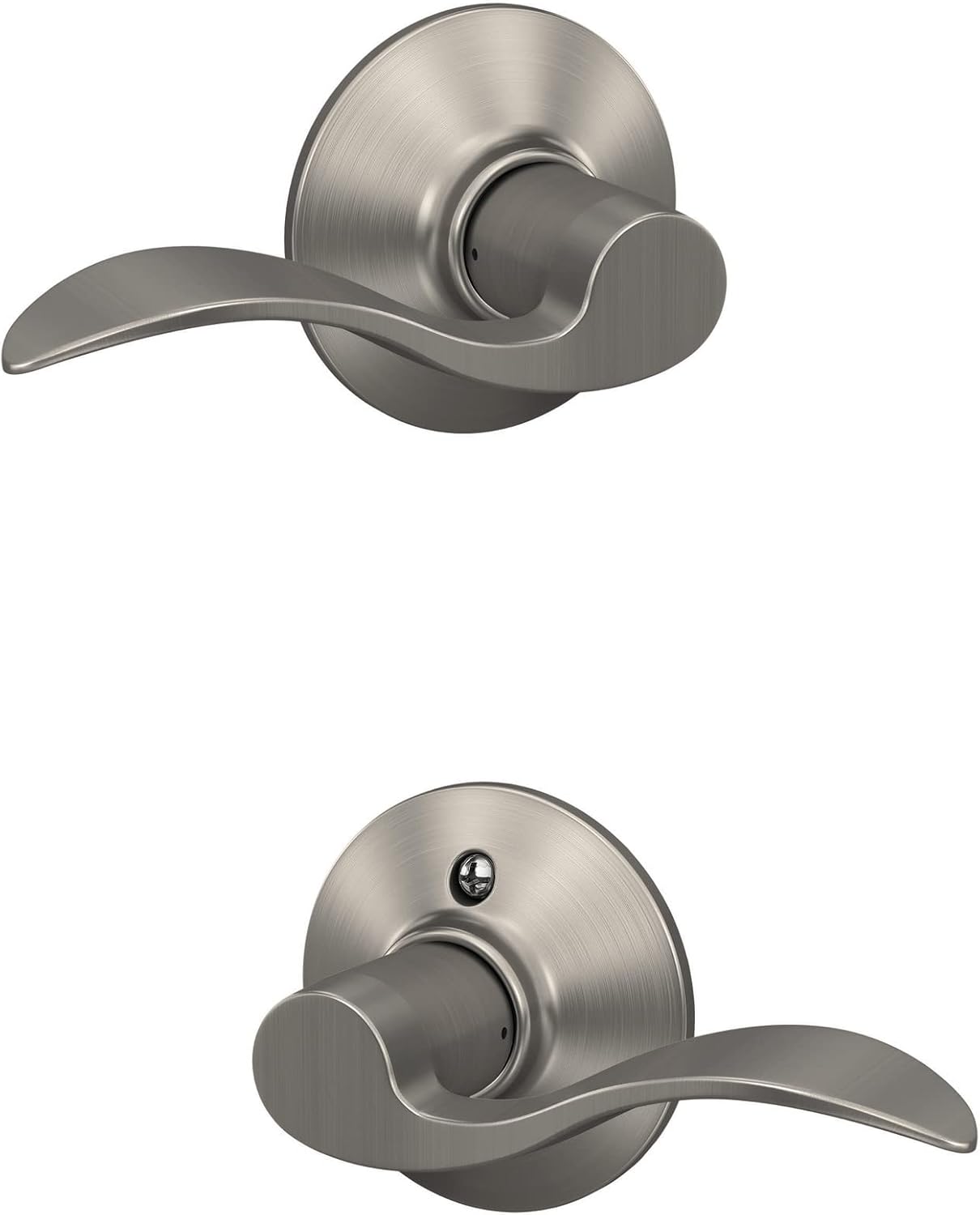 Schlage F10 V ACC 619 Accent Door Lever Hall & Closet Passage Lock, (Pack of 1), Satin Nickel