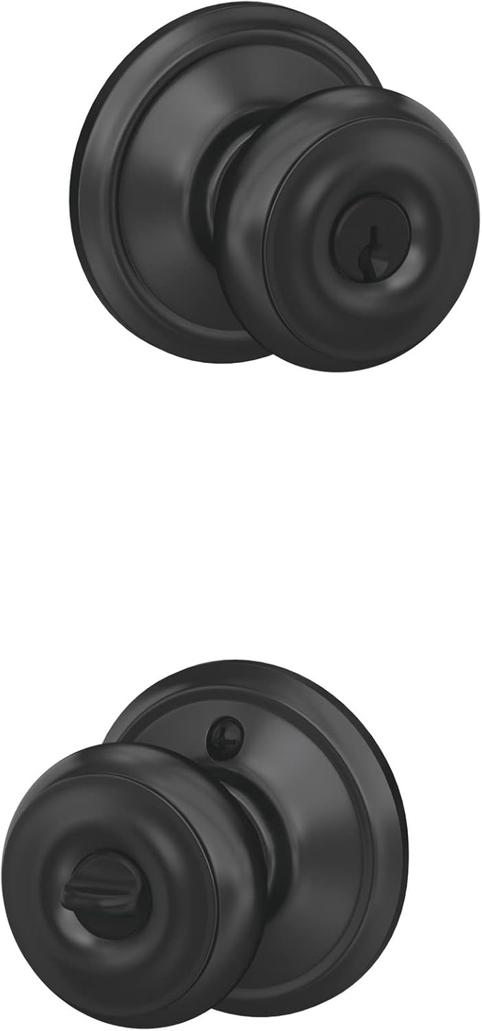 Schlage F51A GEO 622 Georgian Door Knob, Keyed Entry Lock, Matte Black