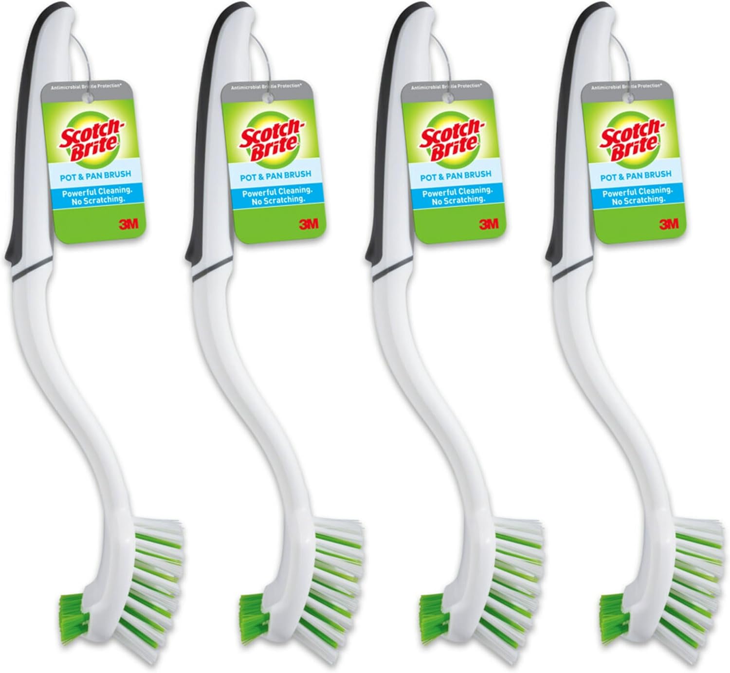 About this itemnAMERICA’S #1 SELLING SCRUB SPONGE BRAND: One package of Scotch-Brite Pot and Pan Dish Brushes; one pack contains four dish scrubbersnREACHES DEEP: Dish scrubber brush features two types of bristles and a long handle, perfect for reaching into deep pots and pansnCLEANS TOUGH MESSES: This dish cleaning brush cleans grease, grime, and dirt so even the messiest of surfaces will shine like newnPROTECTS COOKWARE: A staple of kitchen cleaning, this scrub brush for dishes does not take the protective coatings off cookware to ensure long-lasting usenSAFE ON MOST SURFACES: The dish cleaning brush is safe to use on cookware, pots, pans, stainless steel, outdoor furniture, showers, sinks, and more across the householdnANTIMICROBIAL: Scrubbing dish brush contains an antimicrobial agent in the bristles that protects from bacterial odors