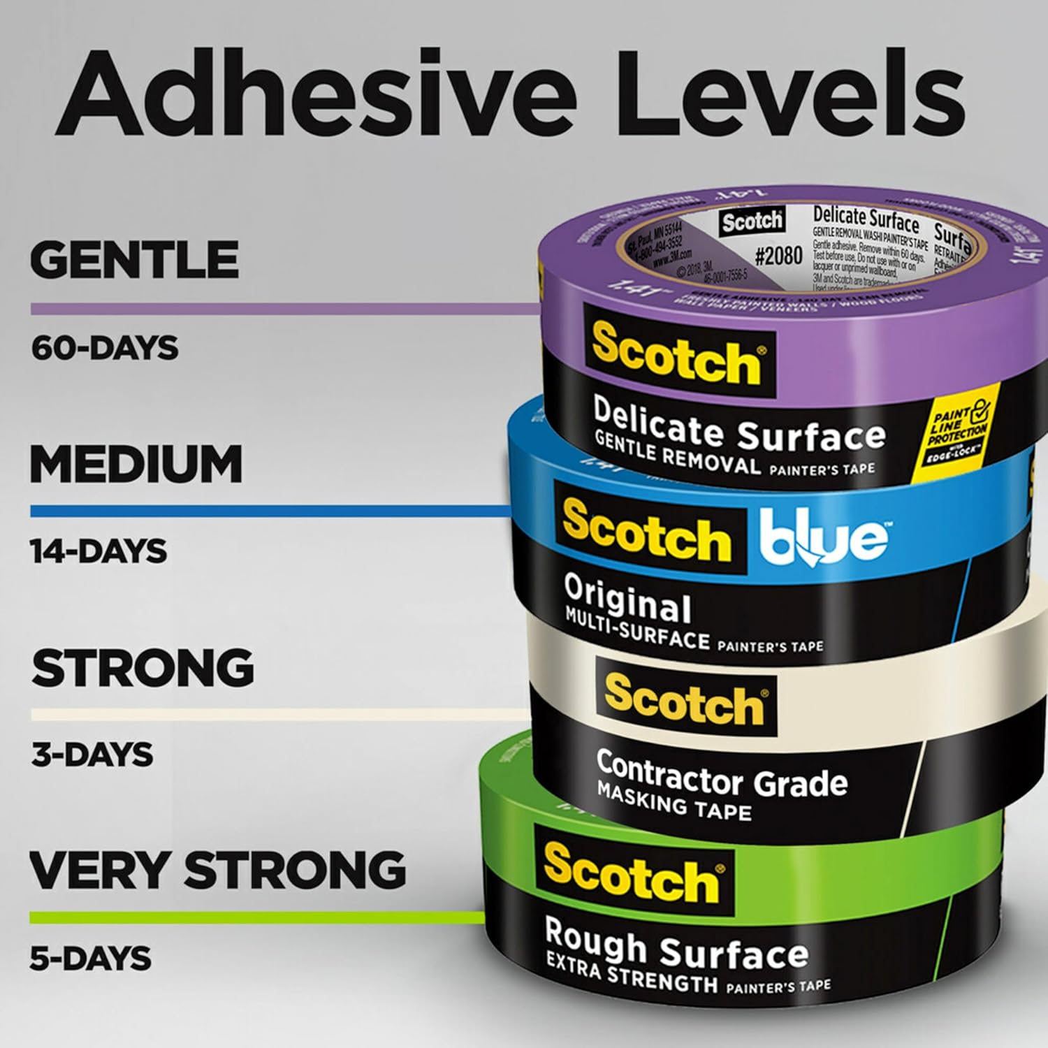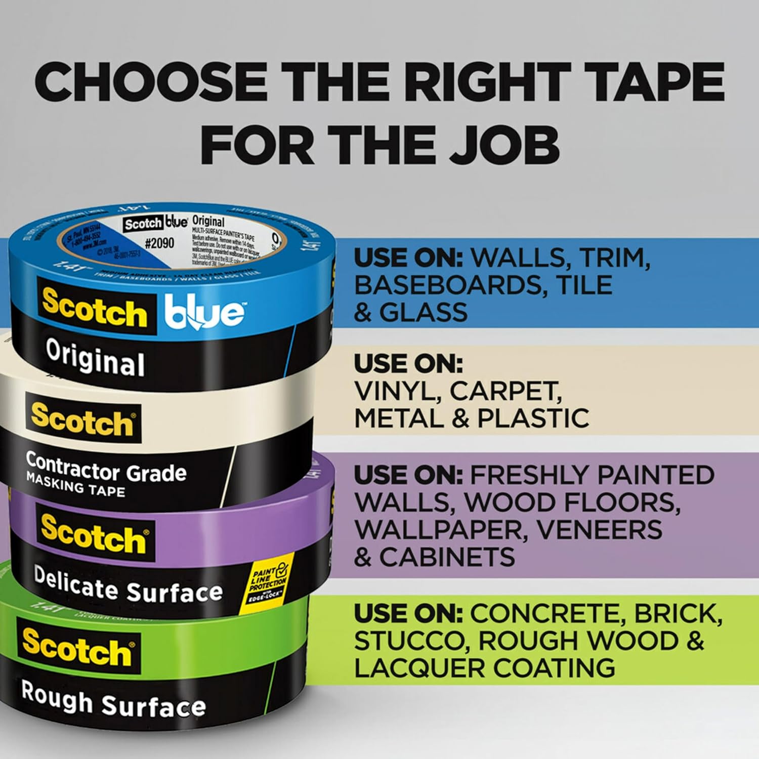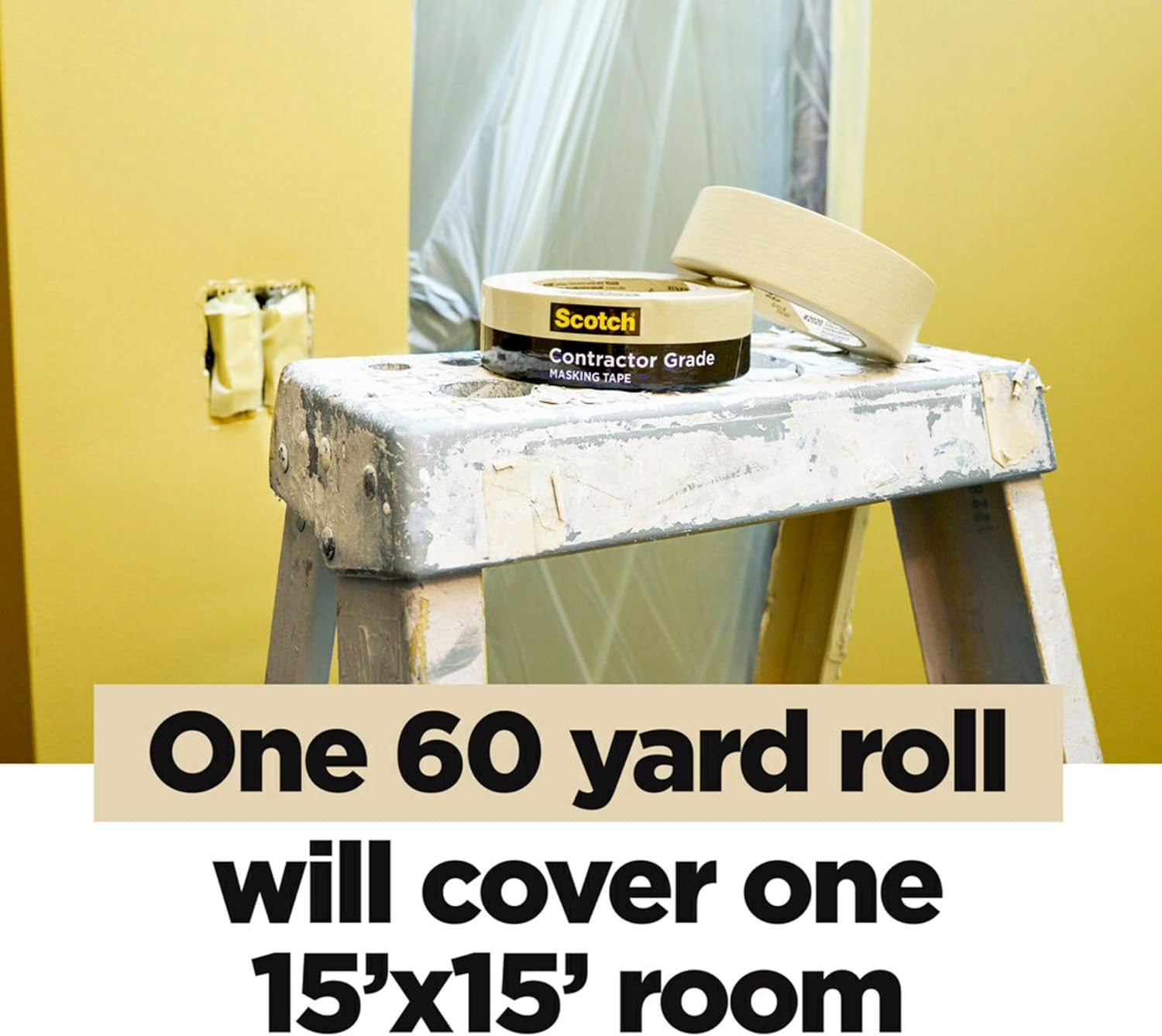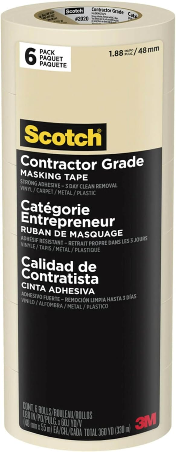 Scotch Painter’s Tape Contractor Grade Masking Tape, 6 Rolls, 1.88 in x 60.1 yd, Holds to Surfaces For Up to 3 days, Removes Easily Without Leaving Sticky Residue, Interior & Exterior Use (2020-48TP6)