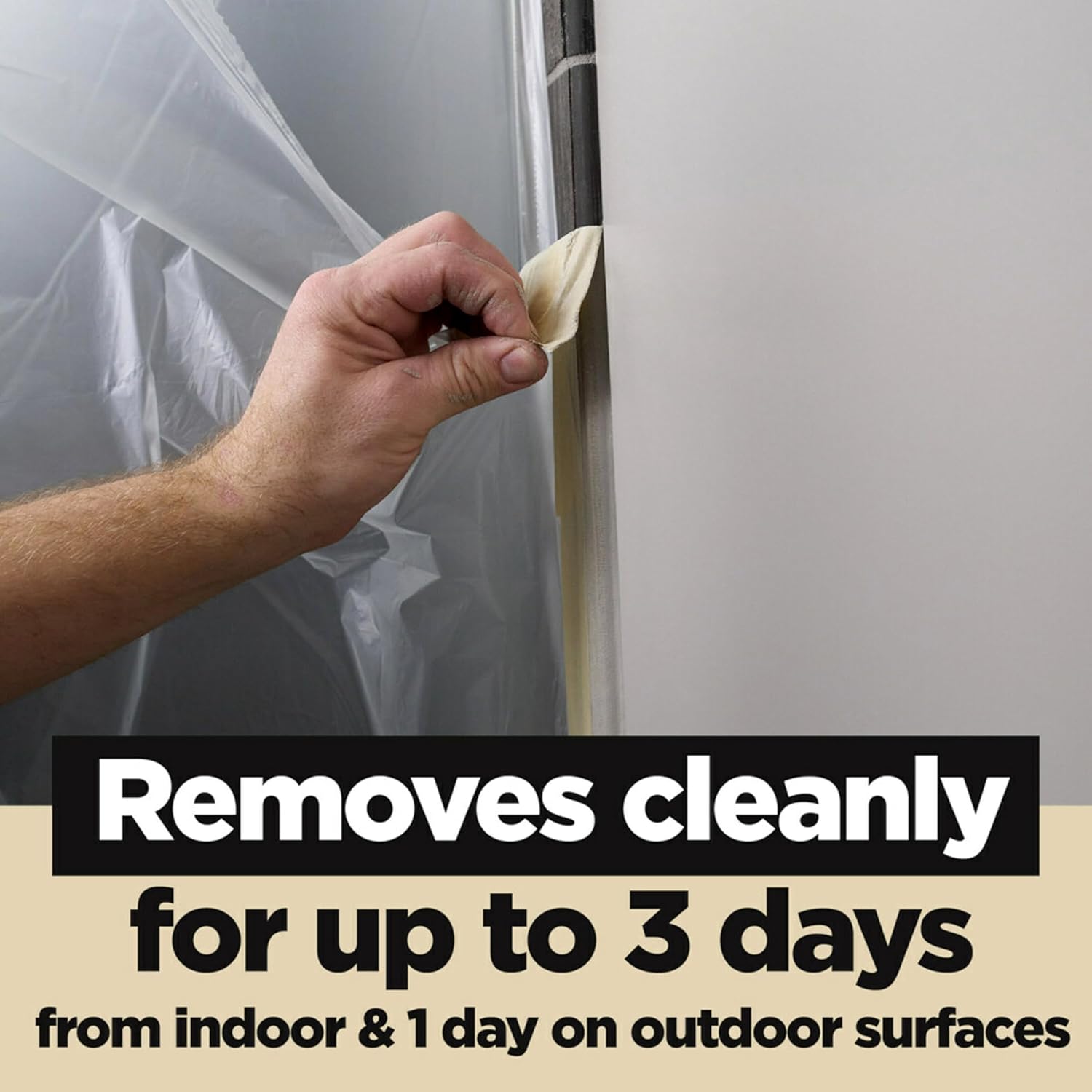 About this itemnUSE-ON SURFACES: Designed for use on vinyl, carpet, metal, and plasticnDAYS CLEAN REMOVAL: 3-day interior and 1-day exterior clean removal leaves behind no damage or sticky residuenADHESIVE LEVEL: StrongnSize: 1.88 in. x 60.1 ydnPACK OUT: 6 Rolls/PacknSUSTAINABILITY: Made from 50% renewable resources; Adhesive made with natural rubber; Tape made in a site certified for energy management (ISO 50001 certified); Core made with 70% post-consumer wastenTape Application Tips: For great paint results make sure the surface is clean, dry and dust-free so that the tape sticks properly. Next, apply the tape onto the surface while pressing down firmly as you go. And lastly, let the tape set for about 30 to 60 minutes before paintingnTape Removal Tips: Wait until the paint is dry to the touch before removing the tape. Lift it up by slowly pulling it back on itself, then removing at a 45-degree anglen See more product details