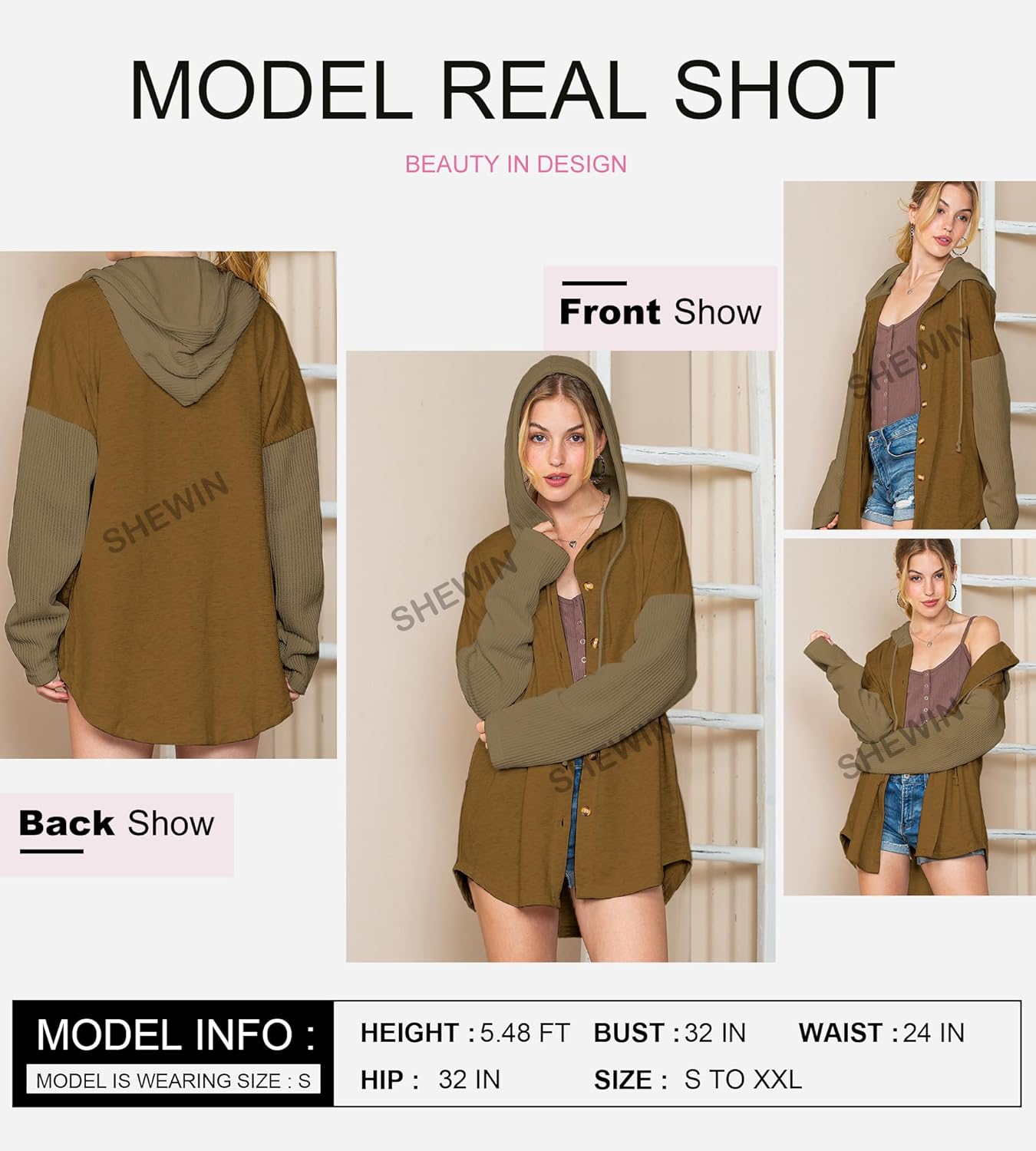 SHEWIN Oversized Sweatshirts for Women Loose Fit Casual Long Sleeve Button Hooded Sweatshirt Hoodie with Pocket