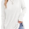 XIEERDUO Womens Tunic Tops to Wear with Leggings Long Sleeve Thumb Hole Shirts Crew Neck Curved Hem