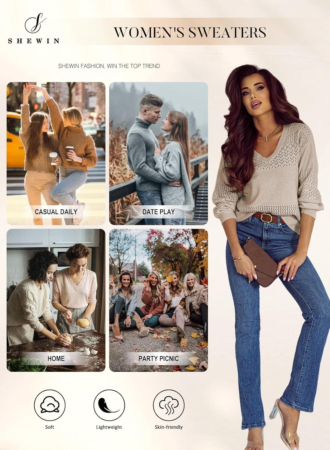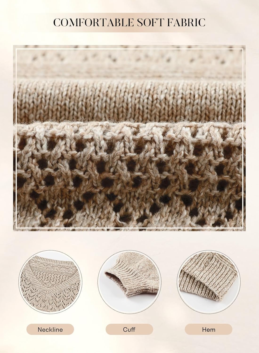 SHEWIN Womens Sweaters Casual Long Sleeve V Neck Lightweight Crochet Pullover Sweater Tops