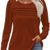OFEEFAN Long Sleeve Shirts for Women Fall Fashion 2025 Dressy Casual Blouses Trendy Pleated Tunic Tops for Leggings