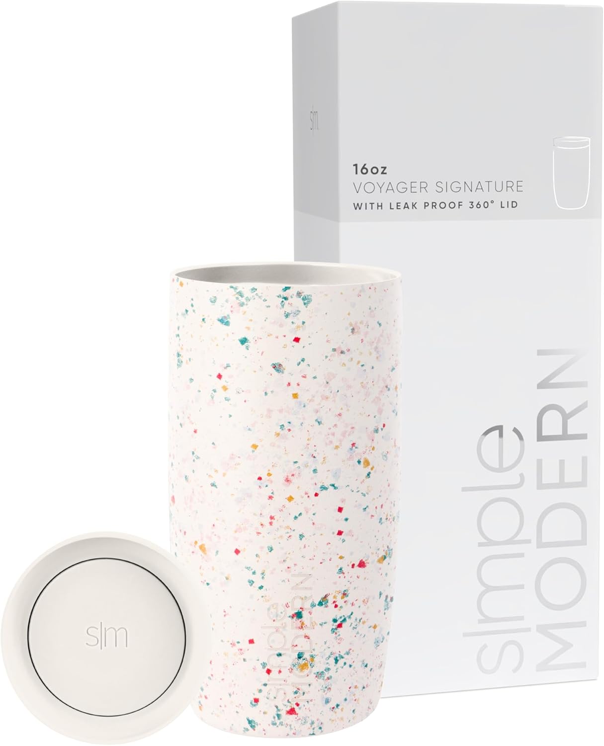 Simple Modern Travel Coffee Mug Tumbler with 360° Lid | Ceramic-Lined Insulated Stainless Steel Cold Brew Iced Coffee Cup Thermos | Gifts for Women Her Him | Voyager Signature | 16oz | Cream Terrazzo