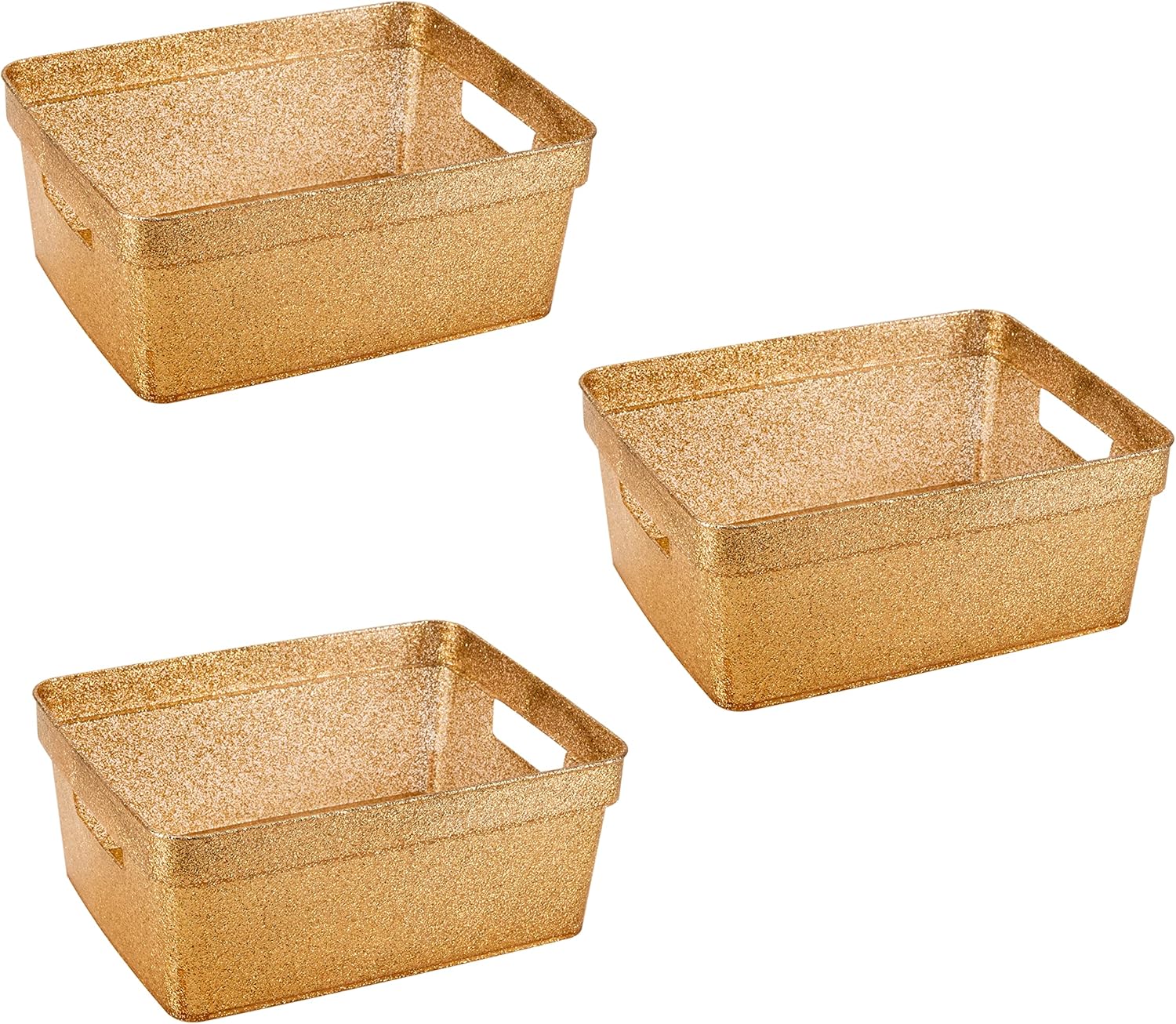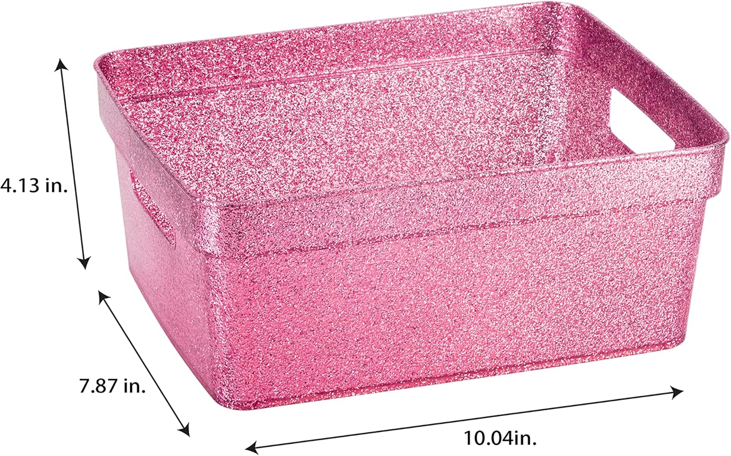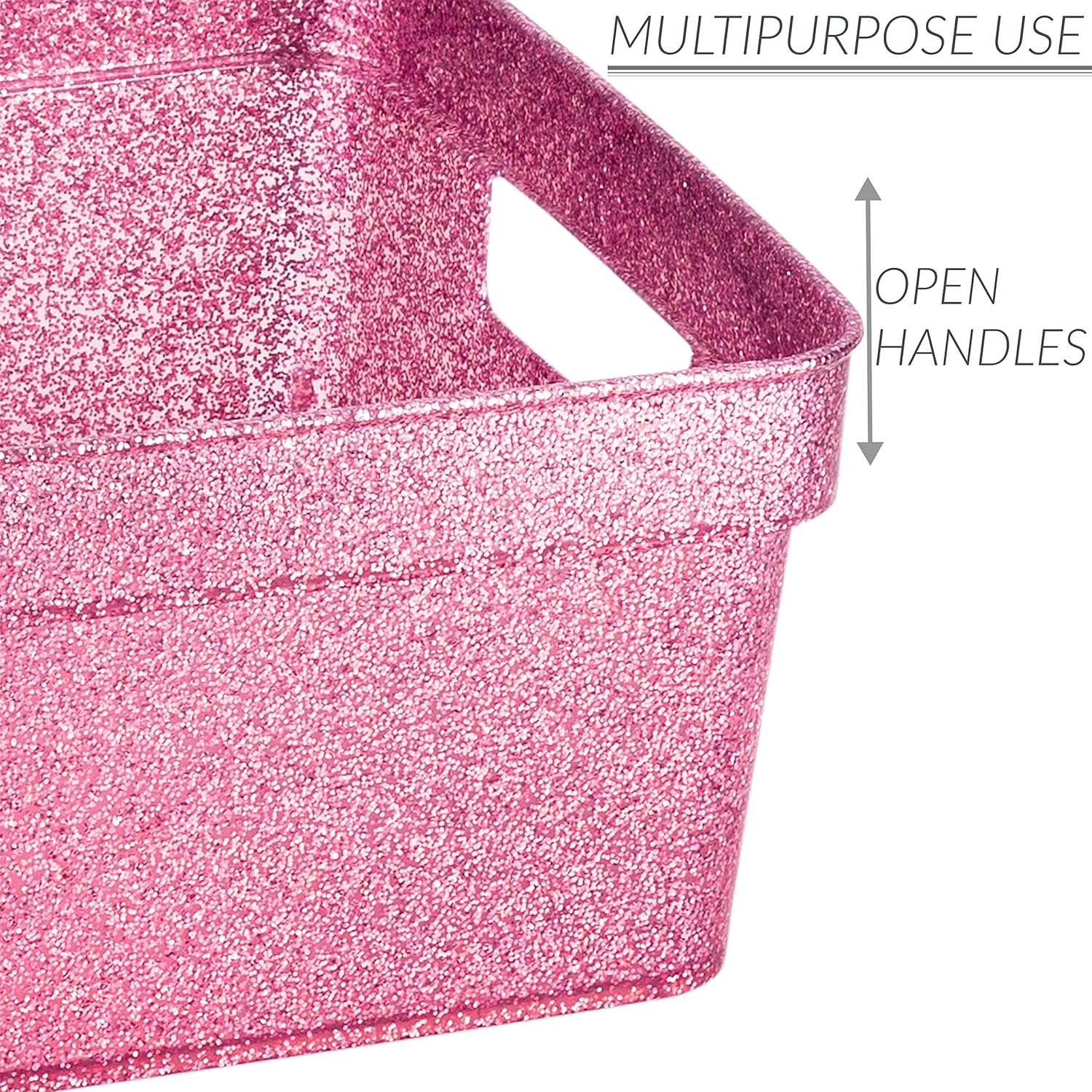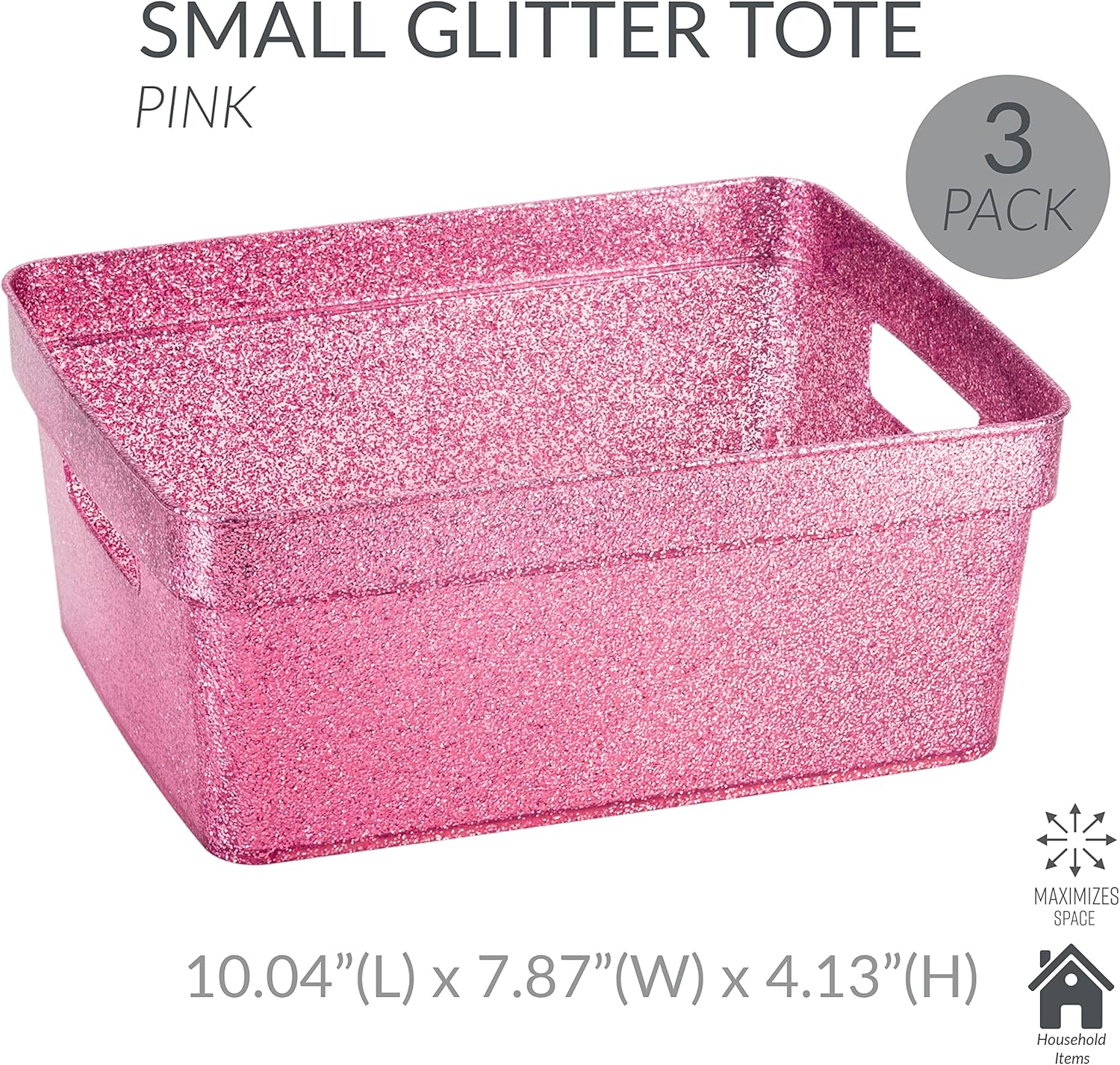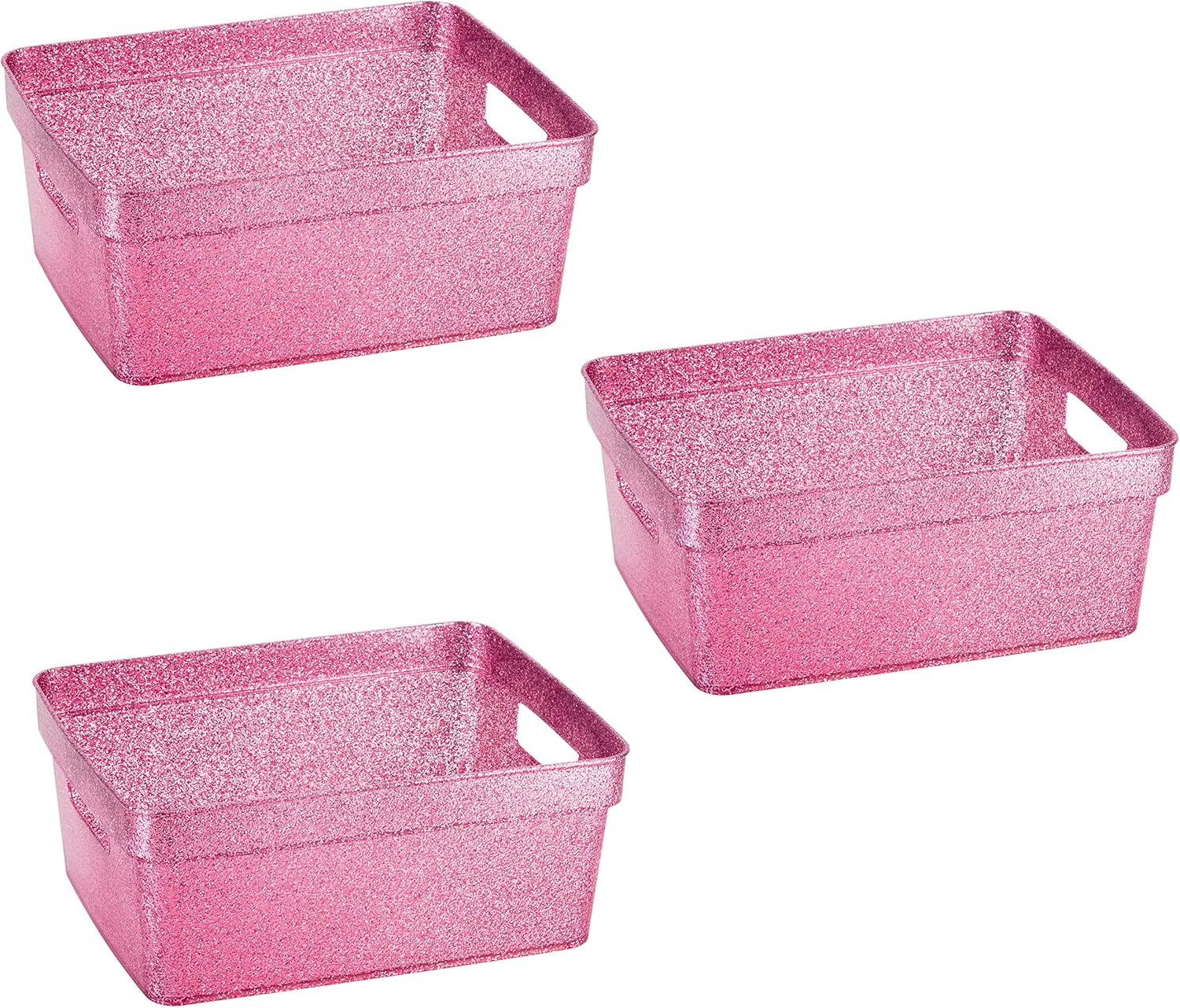Simplify 3 Pack Small Glitter Tote Bin | Home Storage Basket | Bathroom and Office Organization | Multipurpose | Lightweight | Carrying Handles | Pink