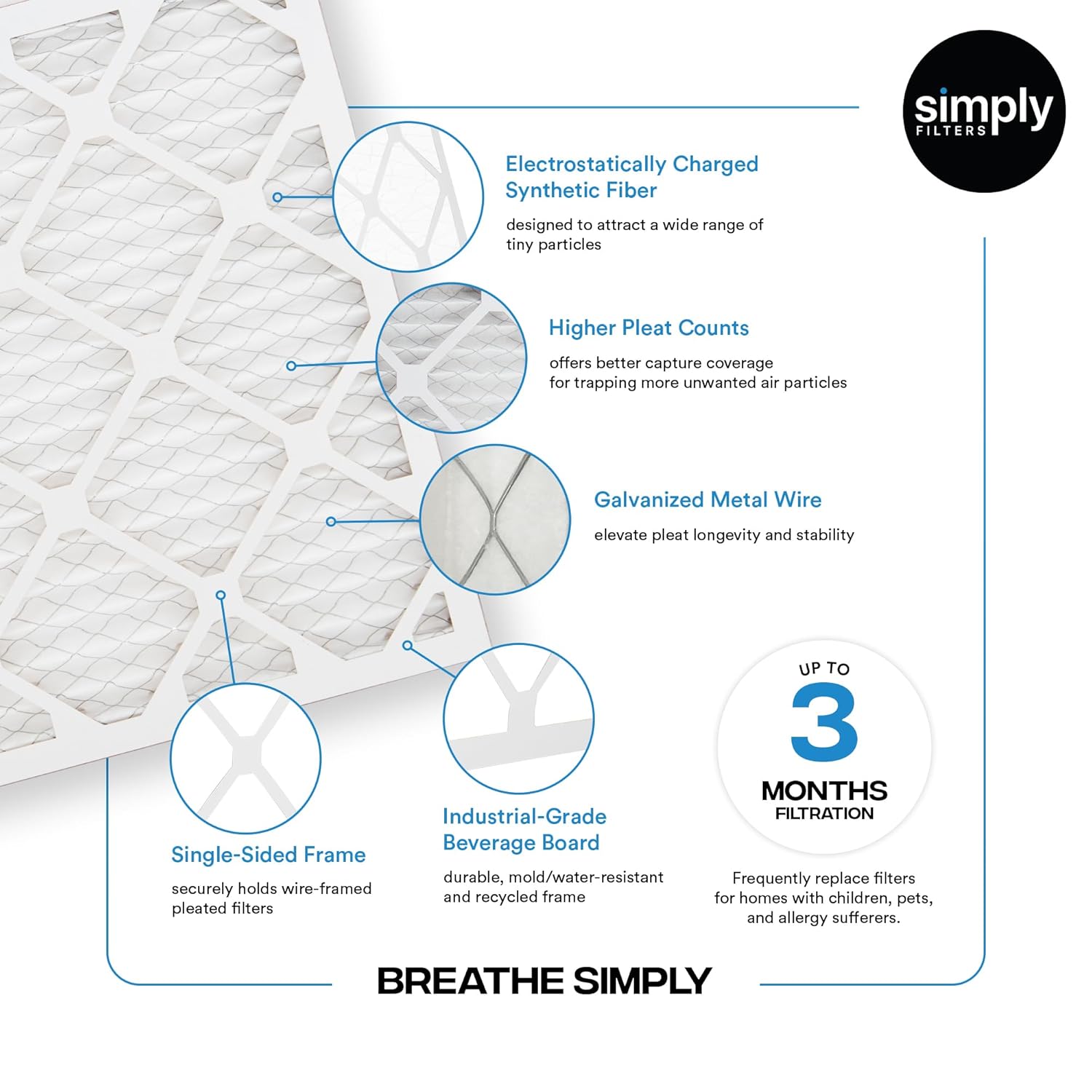Simply 14x25x1 Air Filter, Merv 8, MPR 600, 4 Pack, For Home AC Furnace & HVAC (Actual Size: 13.75