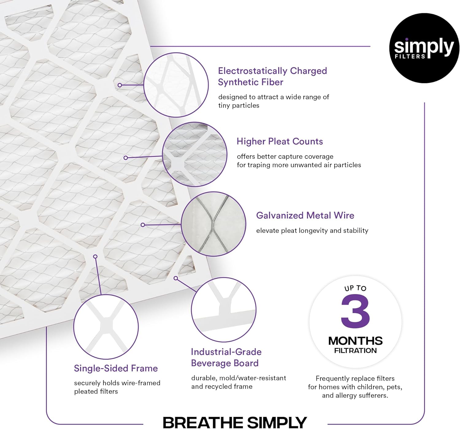 Simply 20x25x1 Air Filter, Merv 13, MPR 1500, 6 Pack, For Home AC Furnace & HVAC (Actual Size: 19.75
