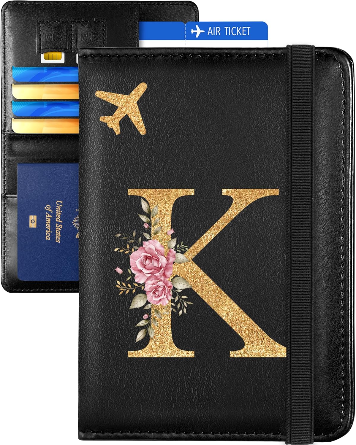 Slohif Initial Passport Holder Cover Wallet Case for Travel Women – Leather Letter Passport Book Family Multiple Personalized Organizer Slim Carrier Card Slots Protector Sleeve Essentials Black K