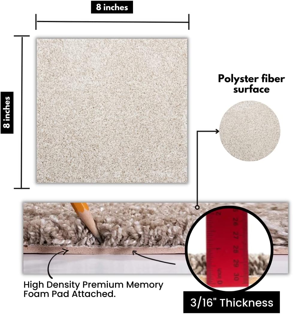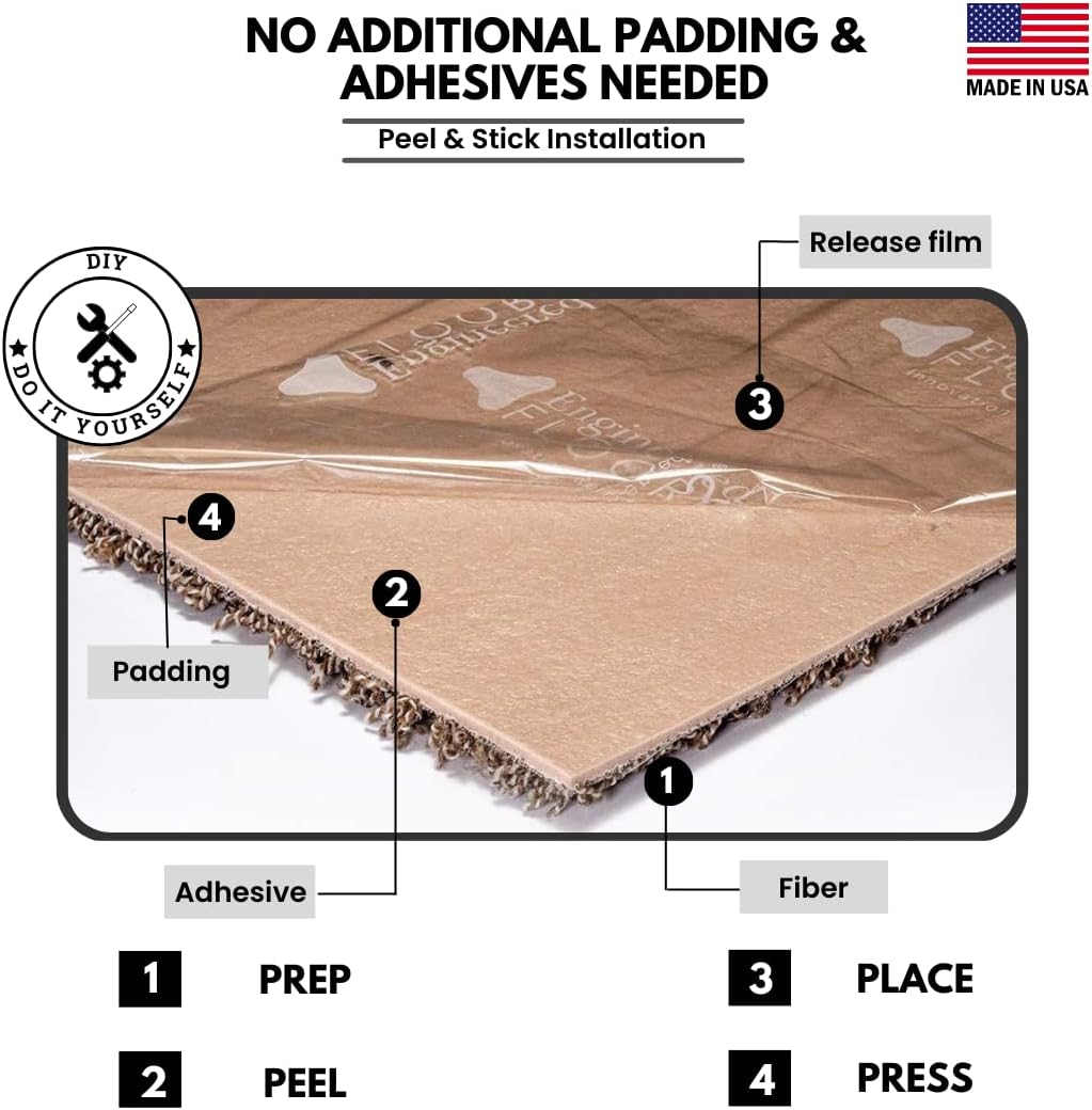 About this itemnTry Before You Buy: Smart Squares ensure satisfaction, we recommend that you purchase a sample of carpet squares before a large order of carpet tiles, allowing you to experience the superior quality and make an informed decision for your flooringnUltra Comfortable Feel: Each Smart Square carpet tiles with padding is equipped with a 6 LB high-density attached polyurethane memory cushion that offers unmatched comfort underfoot, so no additional pad is requirednProvide Seamless Appearance: Our proprietary technology is used to cut the tiles without touching the face fiber, resulting in a virtually seamless appearance that looks like Wall-To-Wall floor carpetnEasily Replaceable: Damaged or worn tiles can be replaced, without replacing the entire room making it the perfect carpet square for all living areasn100% DIY Easy Installation: These peel and stick carpet tiles are the best residential soft-surface DIY carpet flooring solution available on the market. They allow you to easily transform any room by simply prepping, peeling, placing, and pressing the tile on the desired location without the need for any carpet adhesiven See more product details