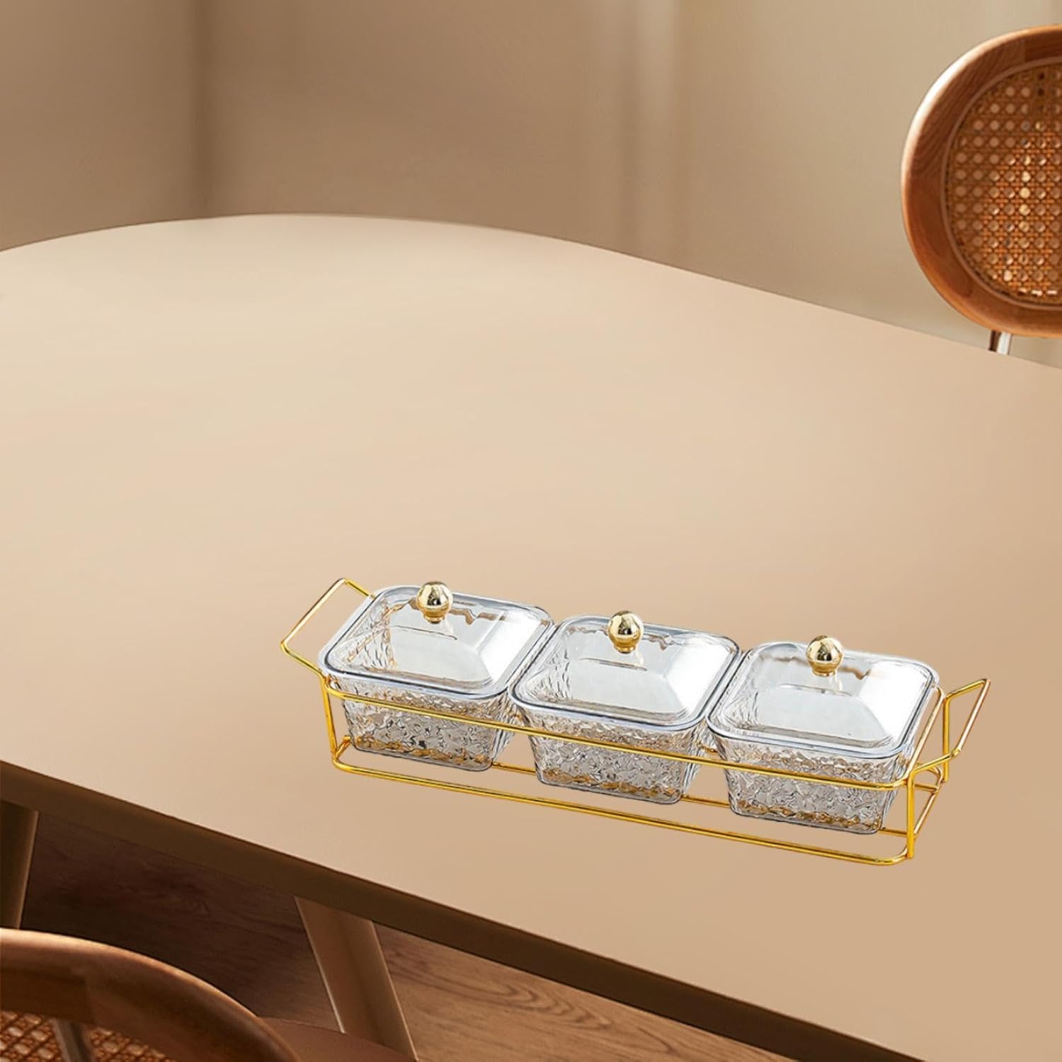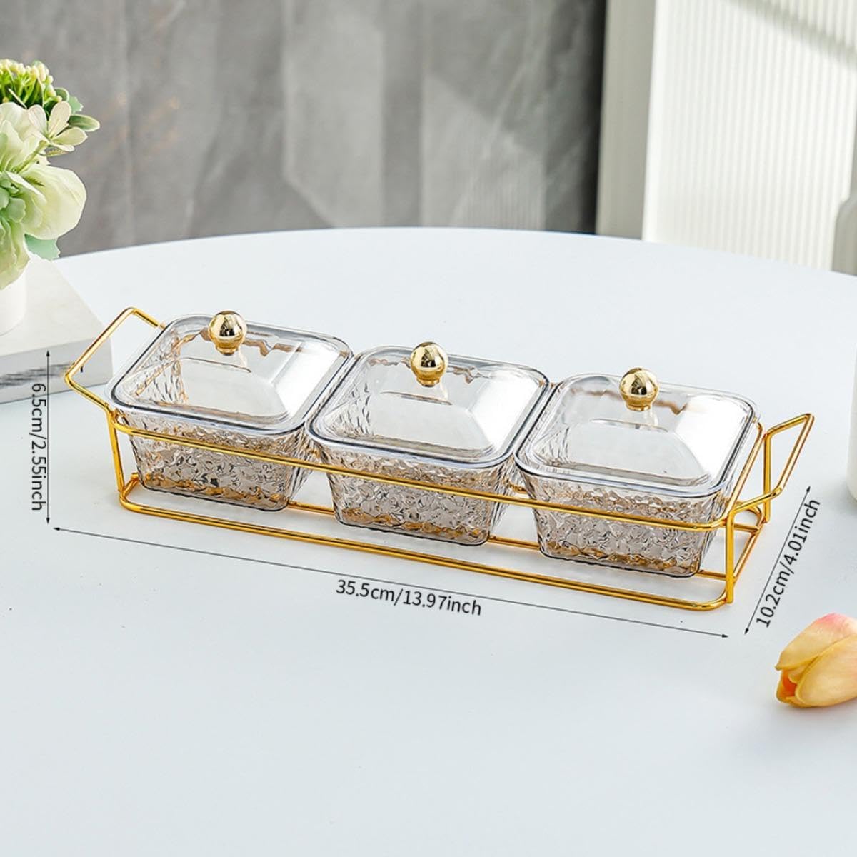 Snack Candy Dish Appetizer Serving Plate Fruit Wedding Nuts Plate Dry Fruit Tray with Lid for Dining Room Party Kitchen Home, 3 Girds