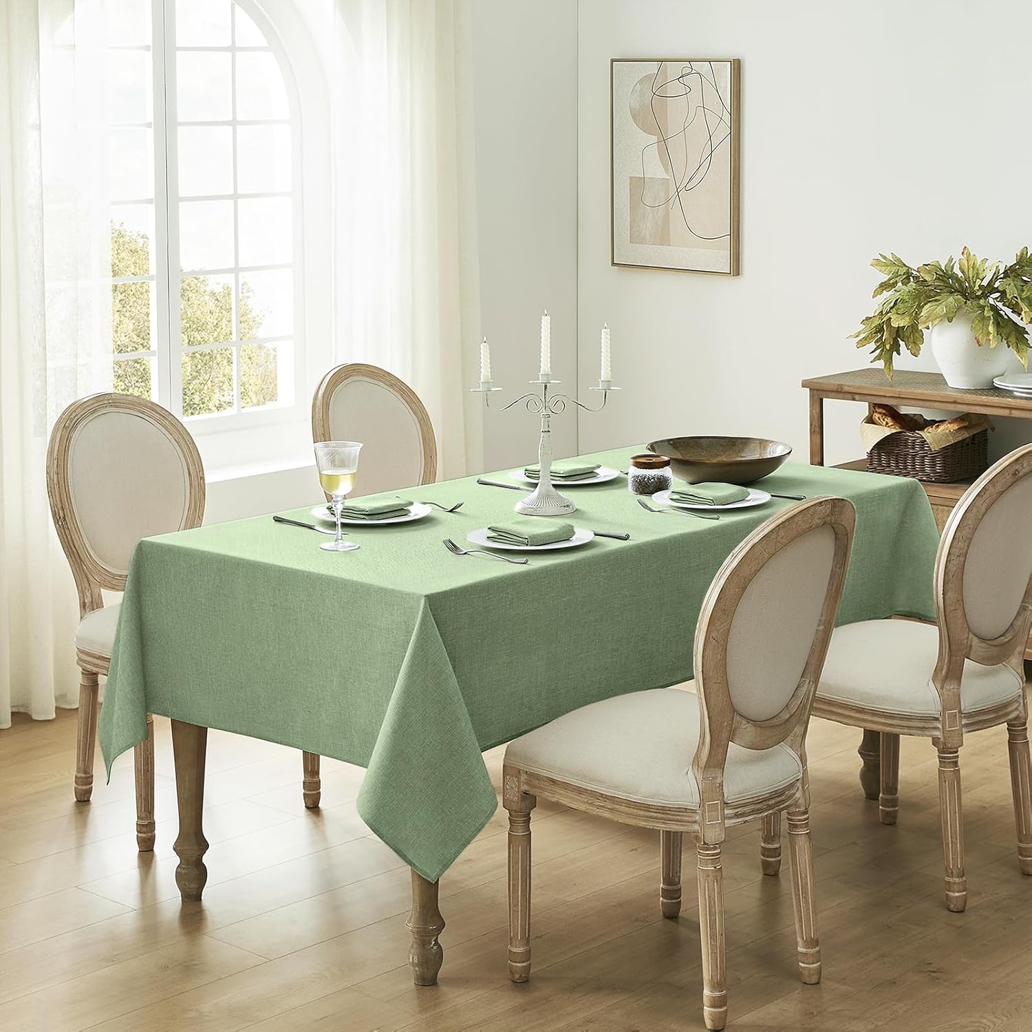 Softalker Spring Linen Textured Rectangle Tablecloth, Waterproof Wipeable Farmhouse Burlap Table Cloth, Stain Resistant Table Covers for Kitchen Dining Holiday Party (60 x 120, Sage Green)