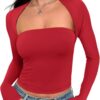 Trendy Queen Womens Going Out Tops Long Sleeve Shirts Shrug Tube Crop Top Basic Cute 2025 Fashion Clothes Separately