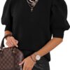 ATHMILE Women's Puff Short Sleeve Sweater Tops 2025 Spring Summer Trendy Crew Neck Casual T Shirts Blouses
