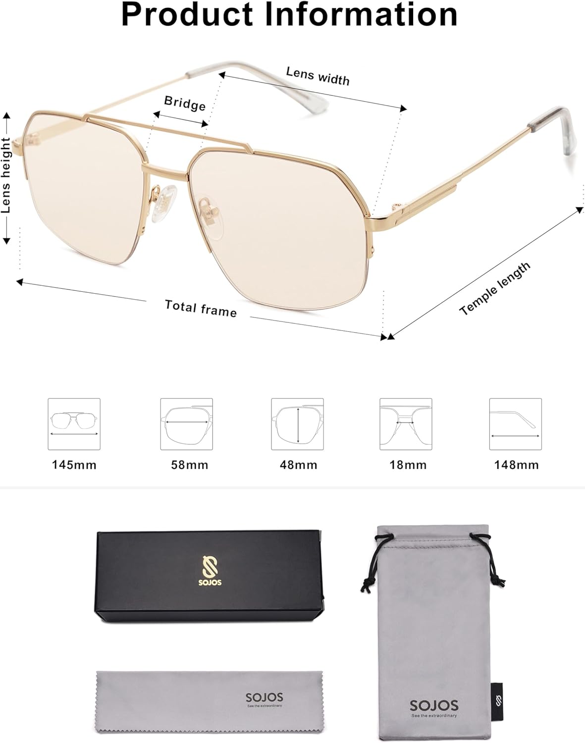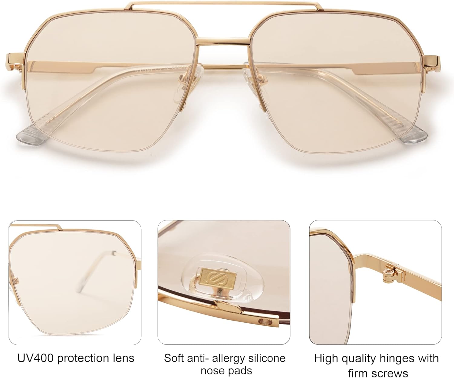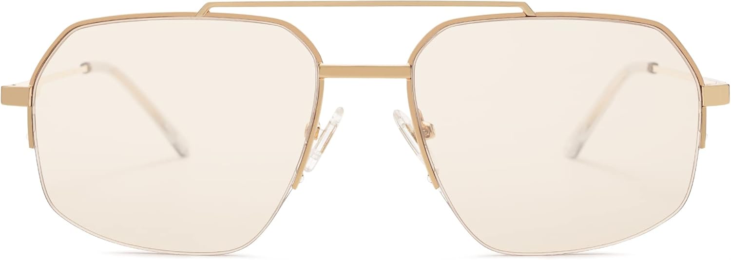 SOJOS Trendy Aviator Sunglasses Mens Womens Retro Double Bridge Metal Semi-Rimless Shades Lentes De Sol Para Mujer SJ1191