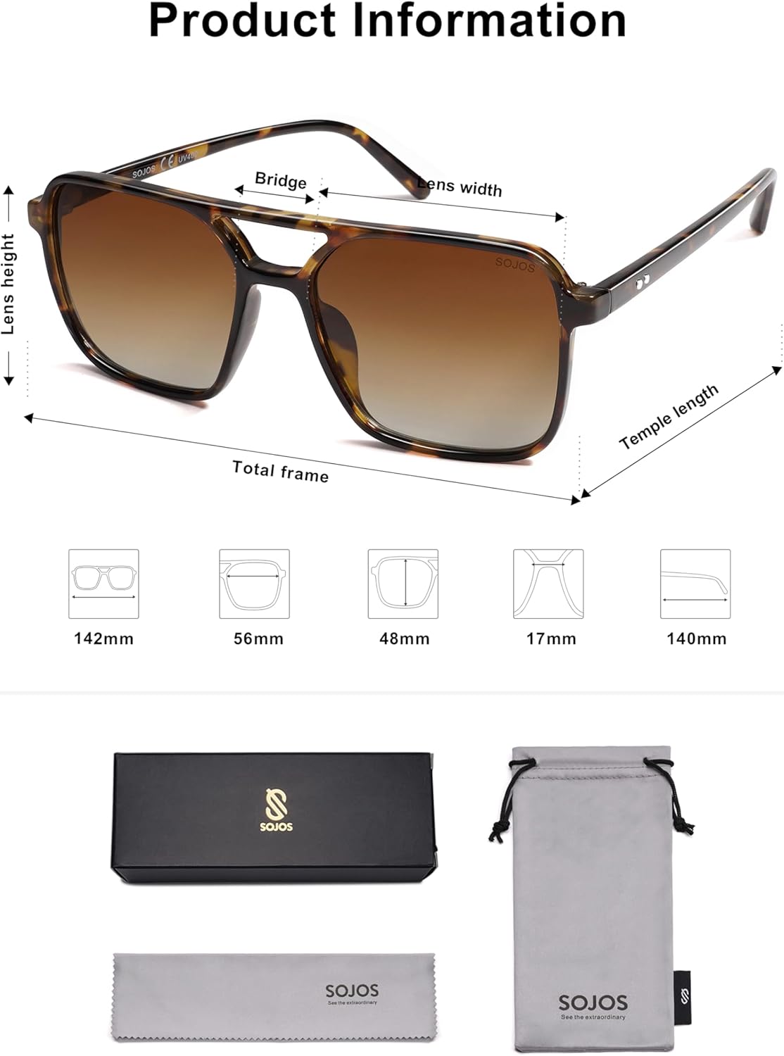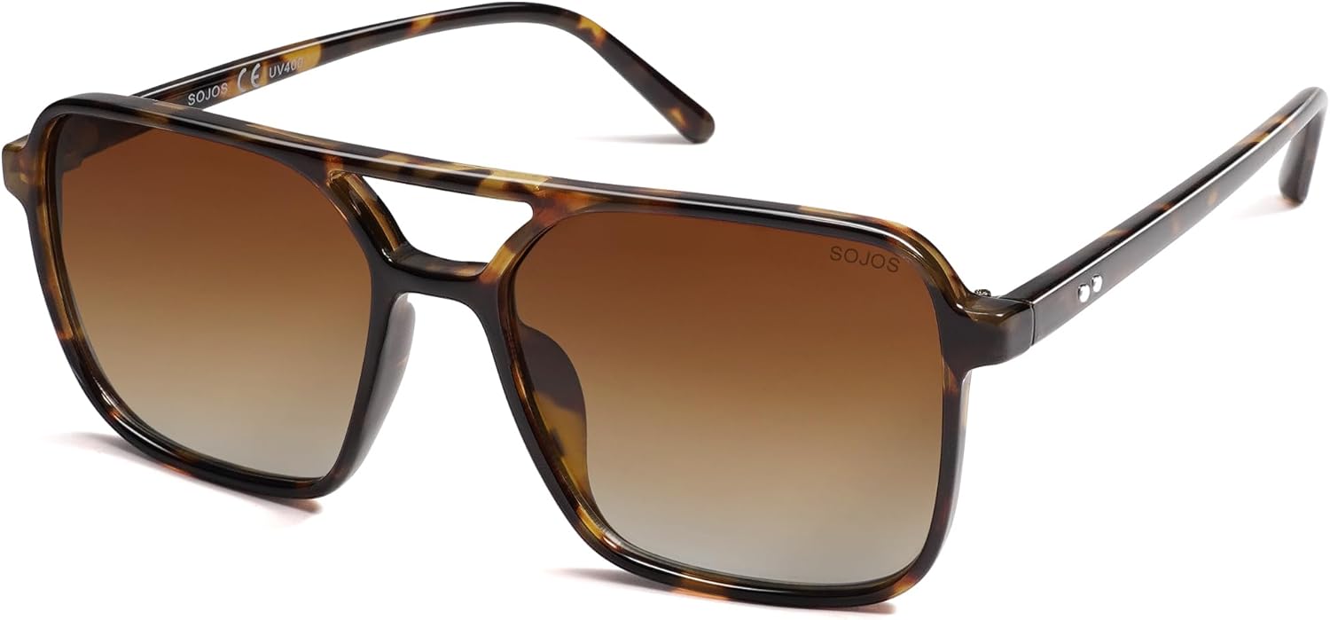 SOJOS Trendy Aviator Sunglasses for Womens Mens Polarized,Hexagonal Square Double Bridge Designer Inspired Sun Glasses SJ2288