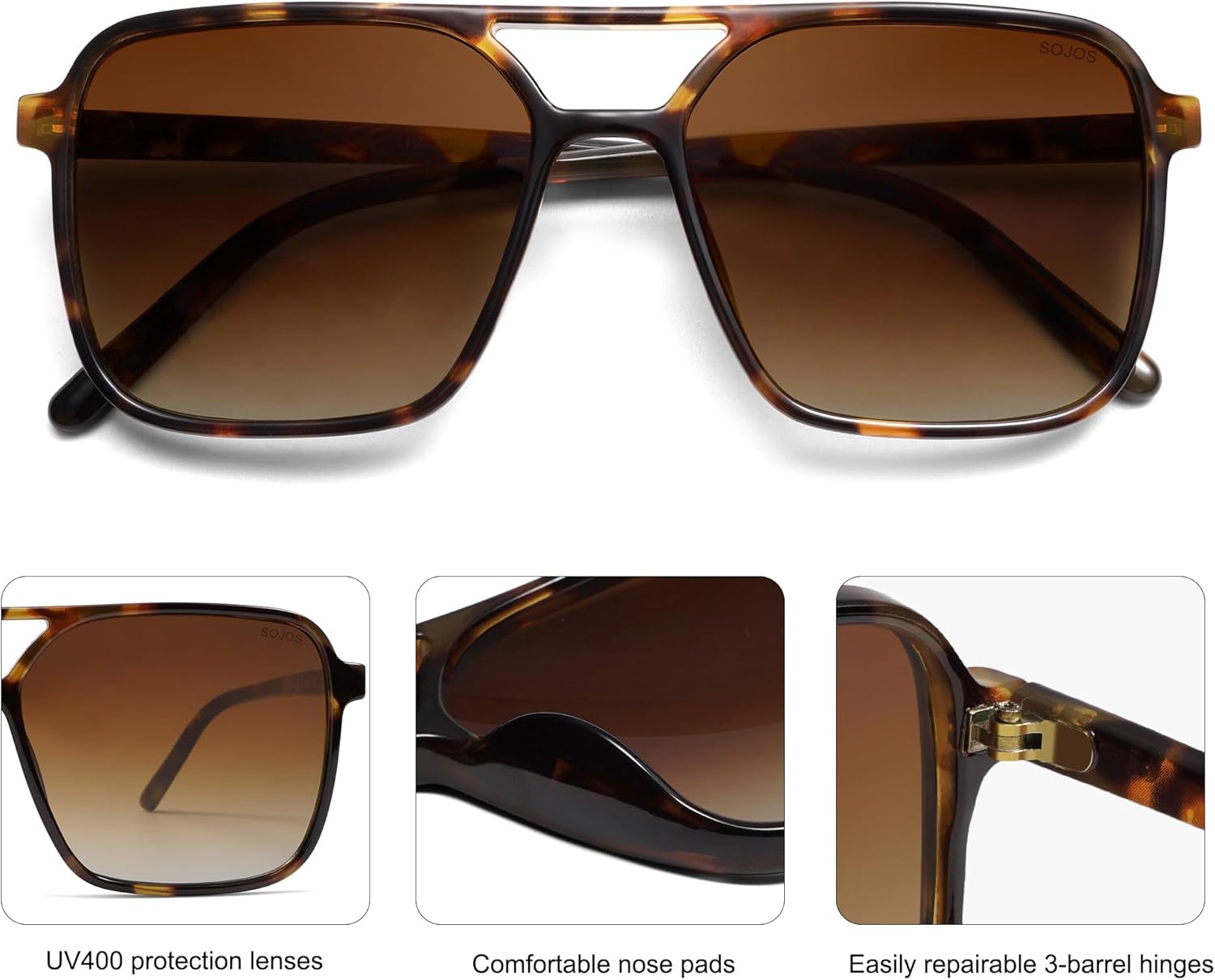 SOJOS Trendy Vintage Aviator Square Sunglasses For Womens Mens Retro 70s UV400 Women Sun Glasses SJ2327