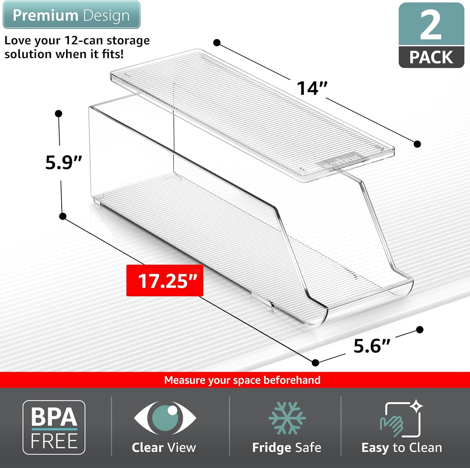 About this itemnPlasticnVersatile Storage Solution: These clear acrylic organizers and storage containers offer versatile kitchen, pantry, and fridge organization. Holding up to 12 cans each, they’re perfect for all your kitchen organization and storage needs, including pantry organizers and storage solutionsnSpace-Saving Stackable Design: With their stackable design and included lids, these BPA-free acrylic organizers maximize your kitchen cabinet, pantry, or fridge space. Keep your kitchen organized and neat with these clear acrylic organizers and storage binsnDurable and Safe: Crafted from BPA-free materials, these clear plastic storage bins with lids are designed to withstand daily use. They ensure the safety of your drinks and other items while promoting kitchen organization and storagenEnhanced Visibility and Accessibility: These clear acrylic organizers and storage containers provide excellent visibility, so you can easily locate and access your favorite beverages. Enjoy a clutter-free kitchen with these kitchen organizers and storage solutionsnMulti-Functional: Not just for soda cans, these soda can organizers for the refrigerator also serve as freezer organizer bins, making them versatile pantry organization and storage tools. Keep your kitchen, fridge, and pantry organized with ease each one measures 17.25