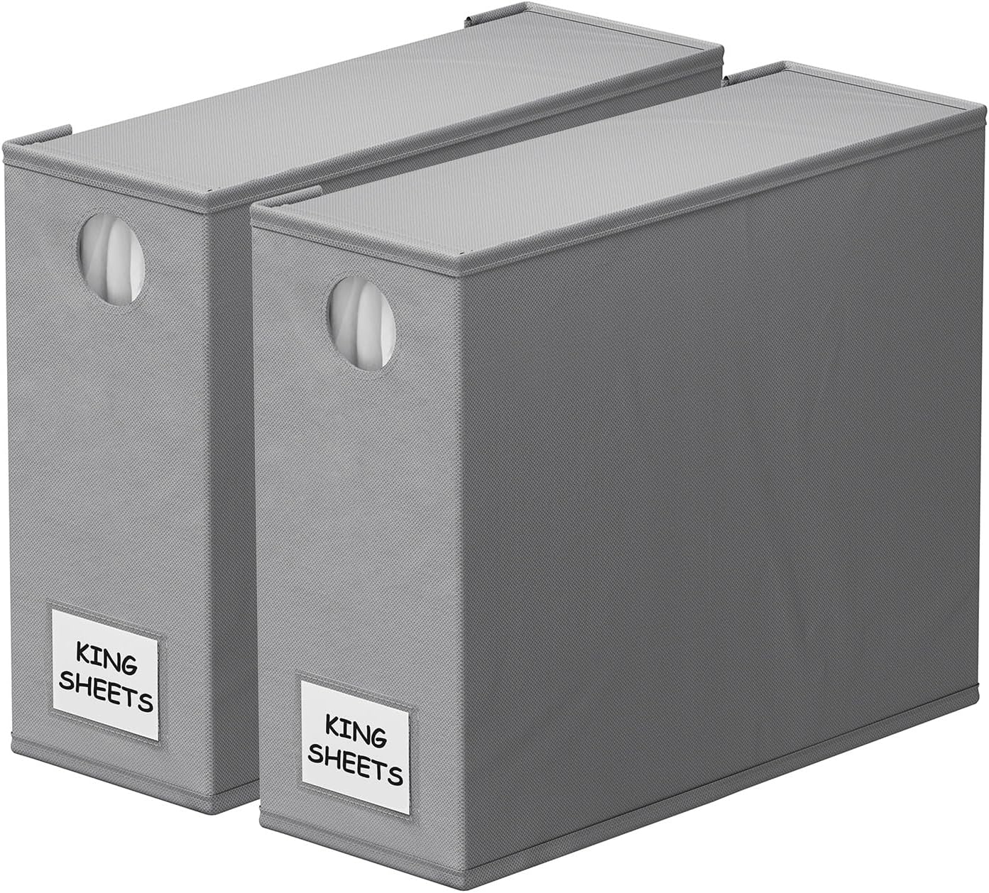 SpaceAid Bed Sheet Organizers and Storage, Modern 2 Pack Foldable Organizing Container (Gray, XL for Queen & King Size)