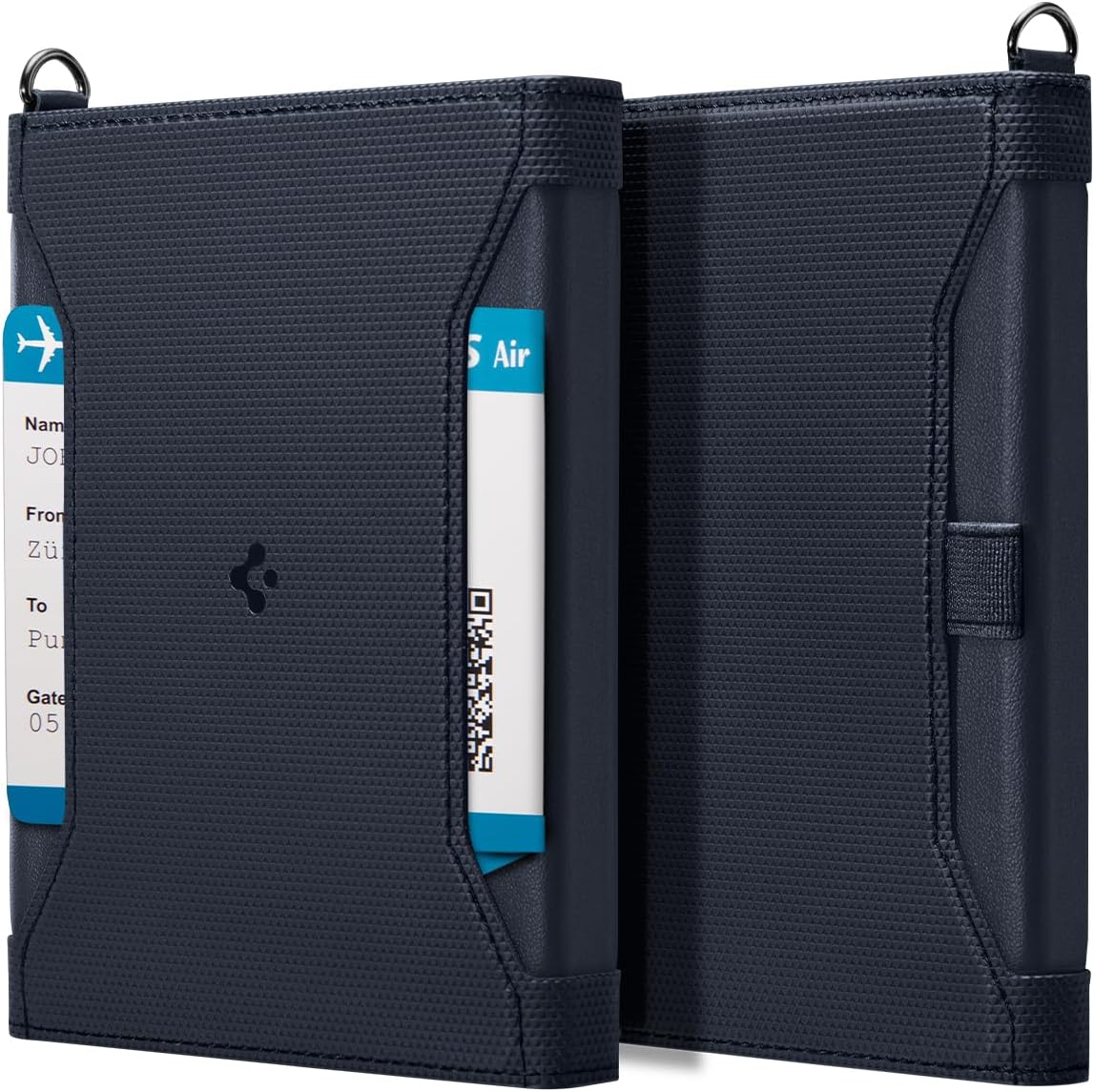 Spigen Life Passport Card Cover Holder Passport Wallet Travel Documents Organizer Protector Passport Holder Travel Accessories with RFID Blocking Technology SIM Card Pin Included – Navy Blue