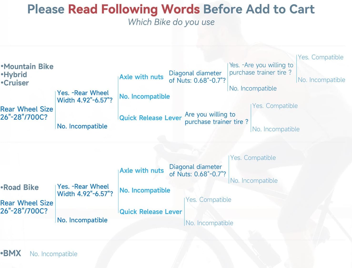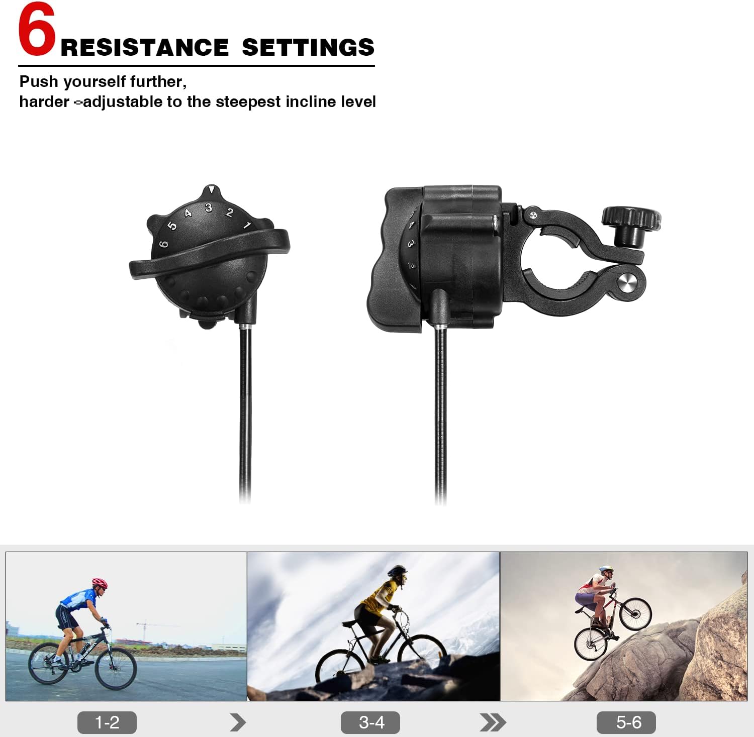 About this itemnStability On Any Surface: Built with a wide base and low stance for unshakable balance. Features 5 adjustable antislip rubber feet to even out any uneven flooringnSpin In Silence: Smooth, seamless design and noise reduction resistance wheel mean you there’s no need to amp up the volume when you build up the burn (Note: The noise is mainly related to the materials and tread of bike tires. We highly suggest you to use road bikes because the noise will be louder if MTB is used.)n6 Resistance Settings: Train to your standards with bar-mounted remote and wide range resistance curve to simulate all cycling conditionsnEasy Bike Release: Ready to head outside? Just hit the press-down lever clamp to easily release and remove your ride. Front wheel riser block and rear quick release lever are included for quick installation.nGreat Compability:The Indoor Bike Trainer Stand fits any road or mountain bike with a 26-28