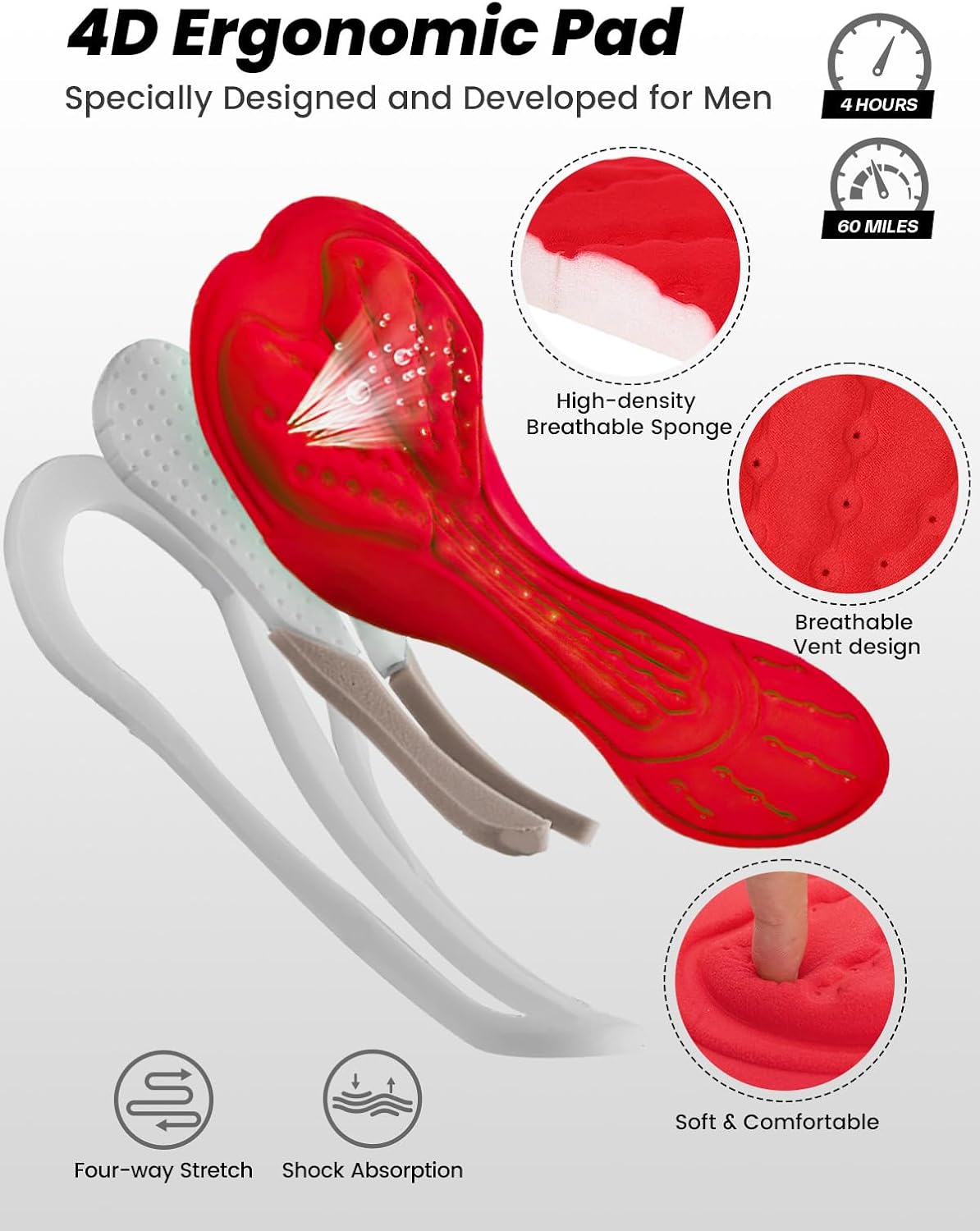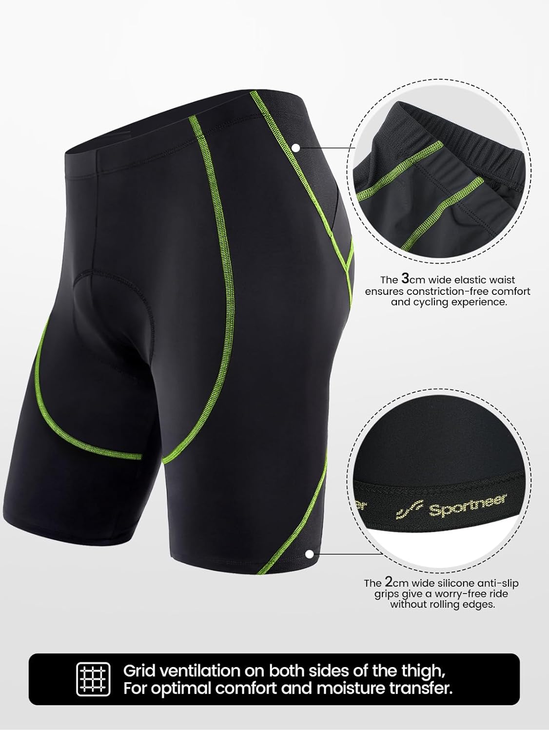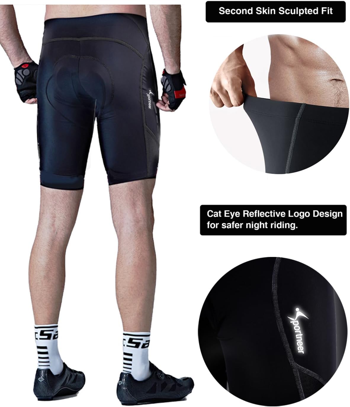 Sportneer Padded Bike Shorts for Men – 4D Padding Mens Bicycle Cycling Biking Clothing Shorts, Breathable and Absorbent